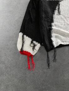 Maglione casual da uomo con frange a contrasto nero, bianco e rosso