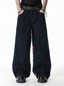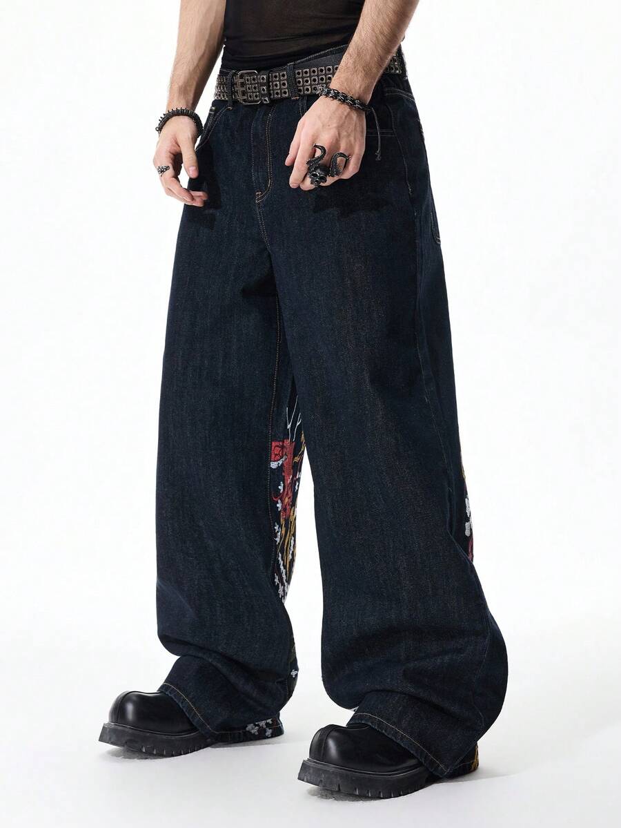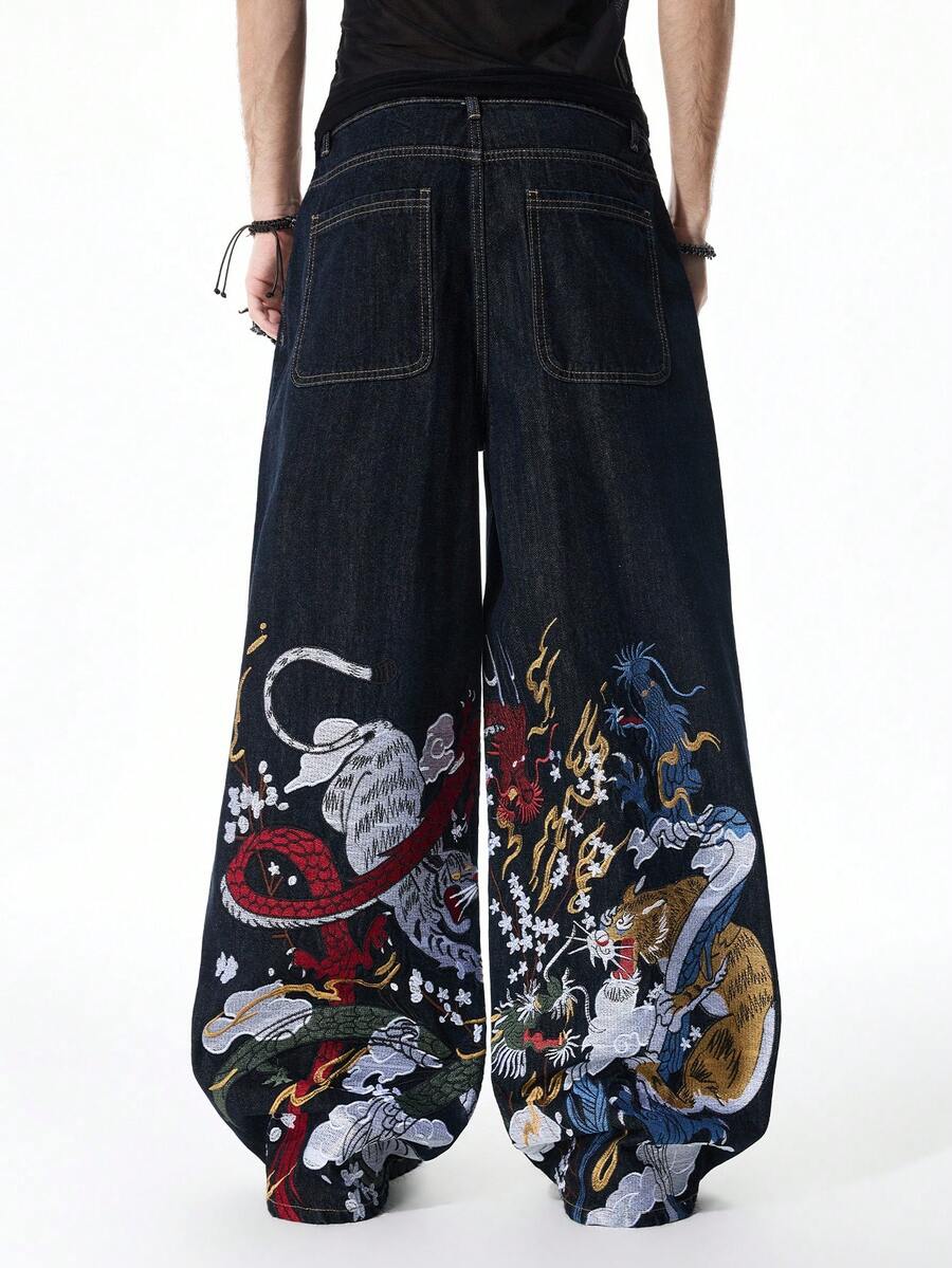 Jeans a gamba ampia da uomo con ricamo di drago alla moda