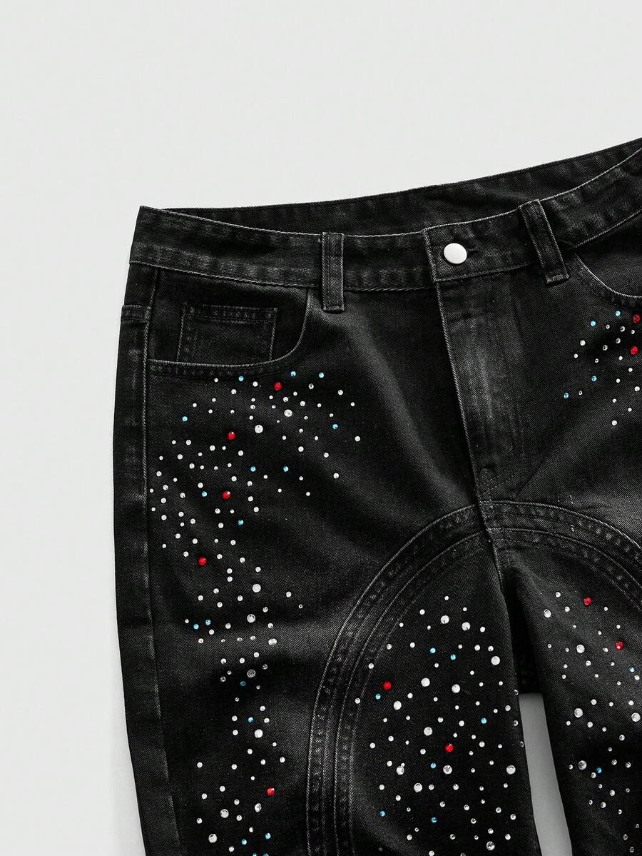 Pantaloncini di jeans neri alla moda personalizzati con strass per uomo