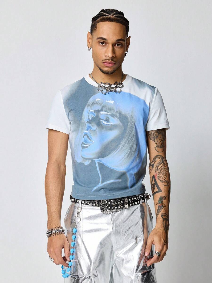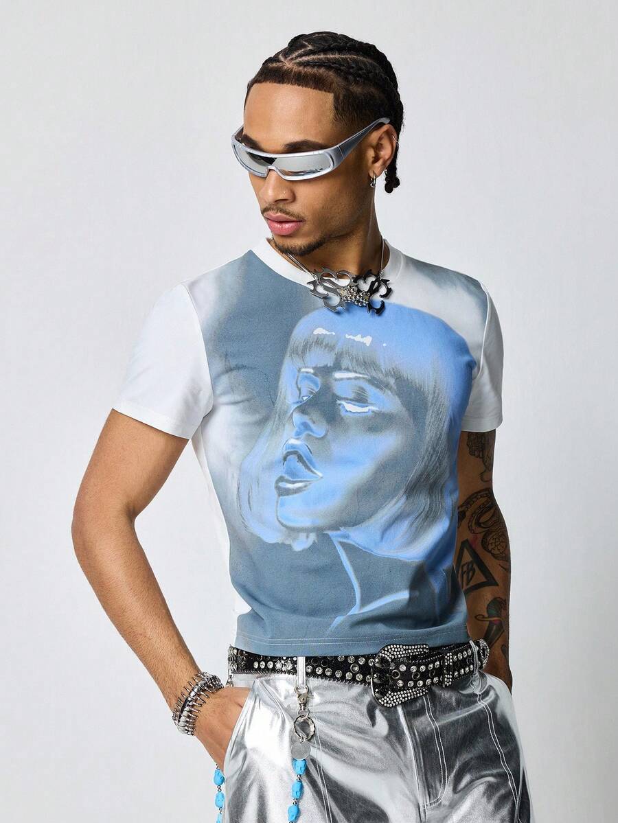 Street Life T-shirt estiva da uomo alla moda con stampa a figura e colori a contrasto