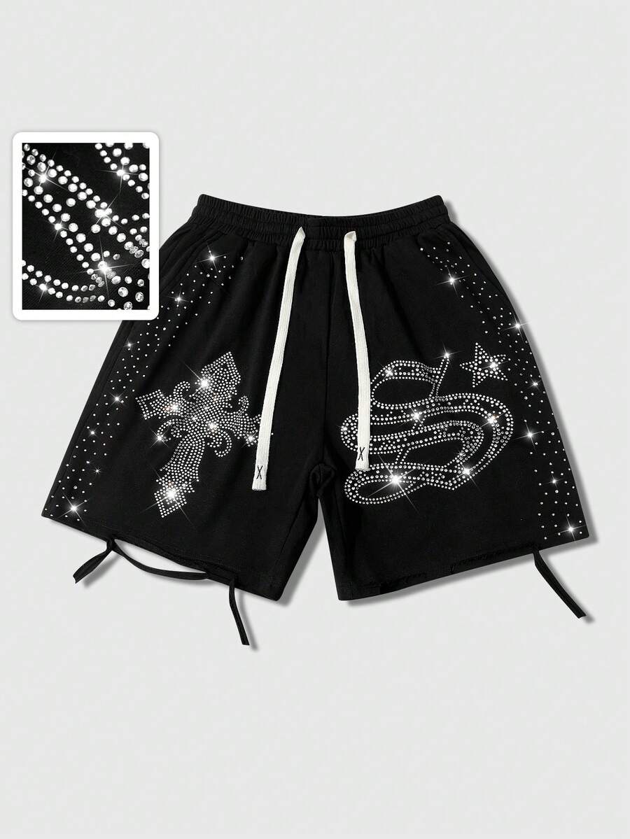 Pantaloncini da uomo alla moda con strass e effetto consumato