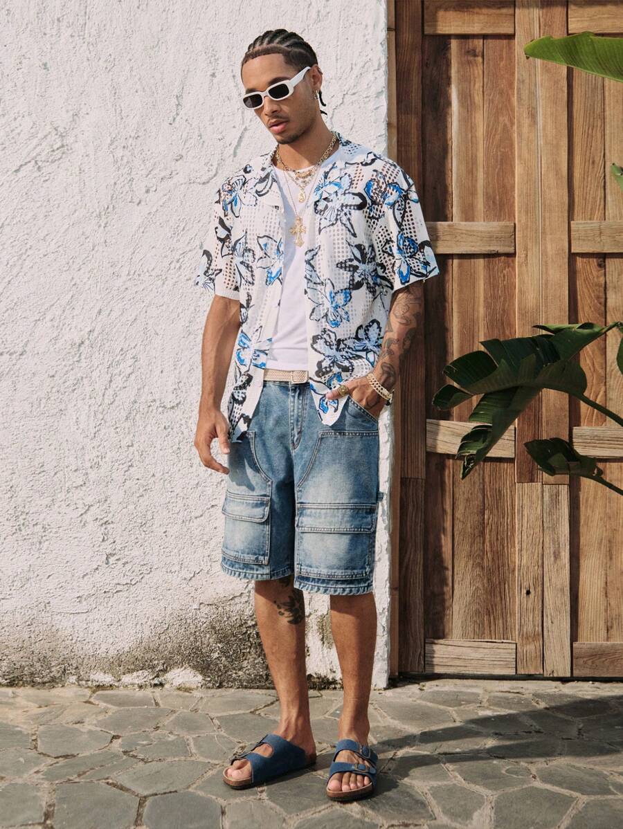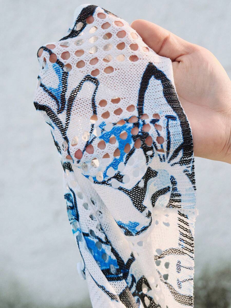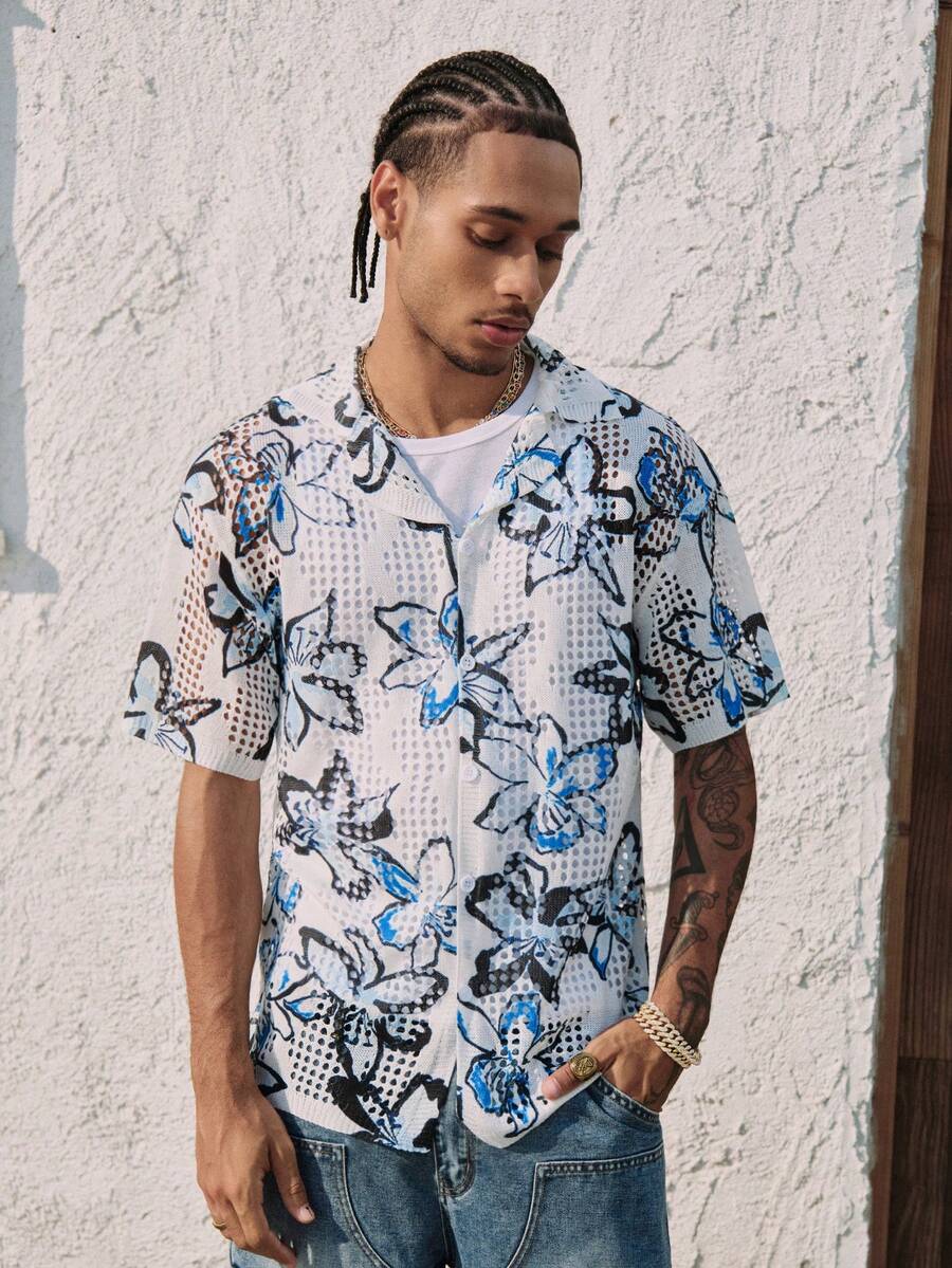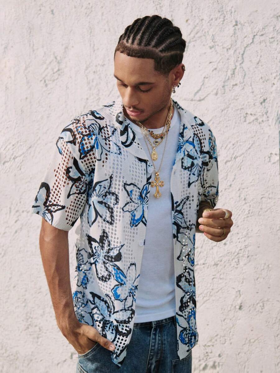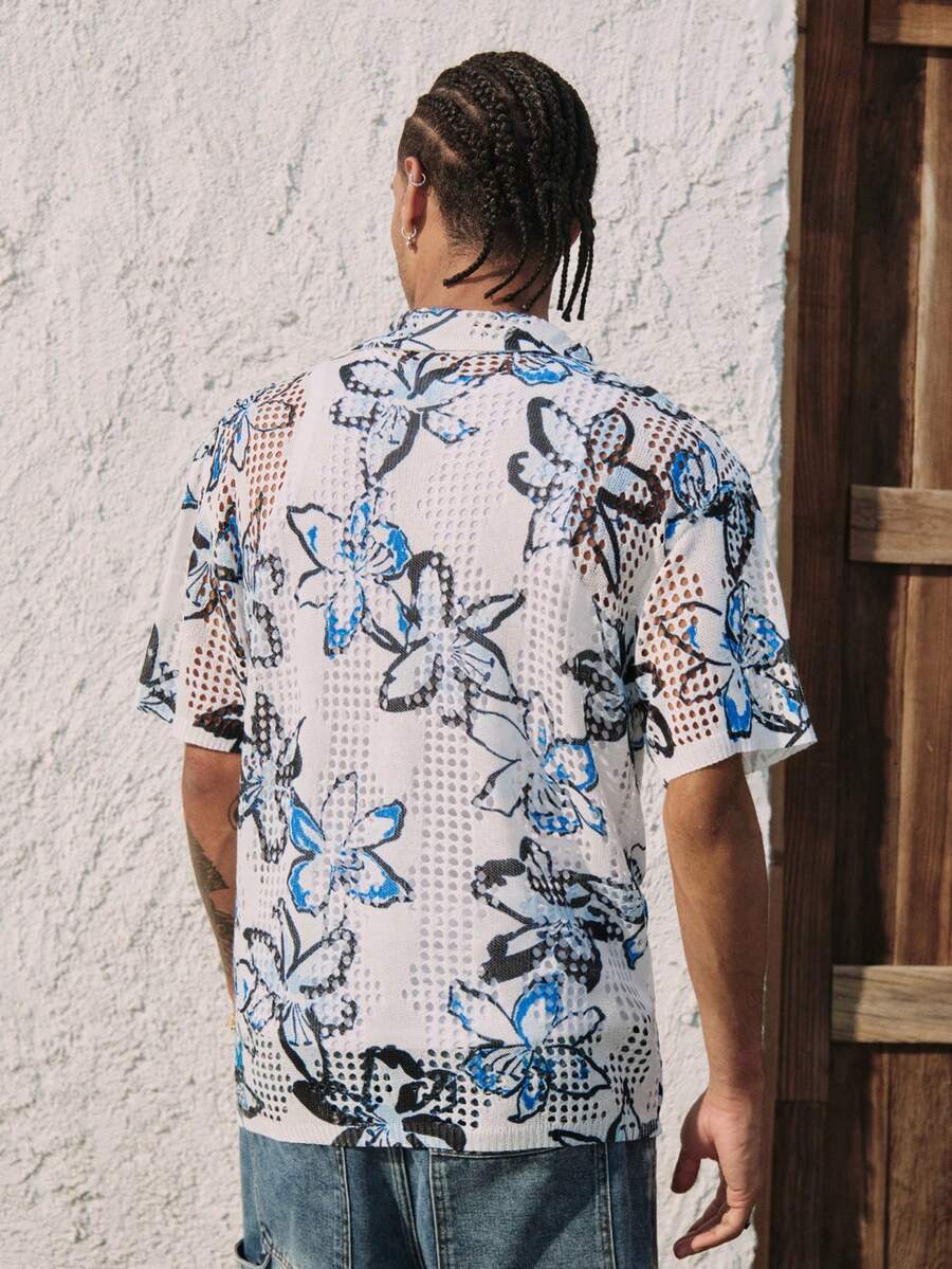 Maglione lavorato a maglia con stampa floreale e lavorazione traforata per uomo