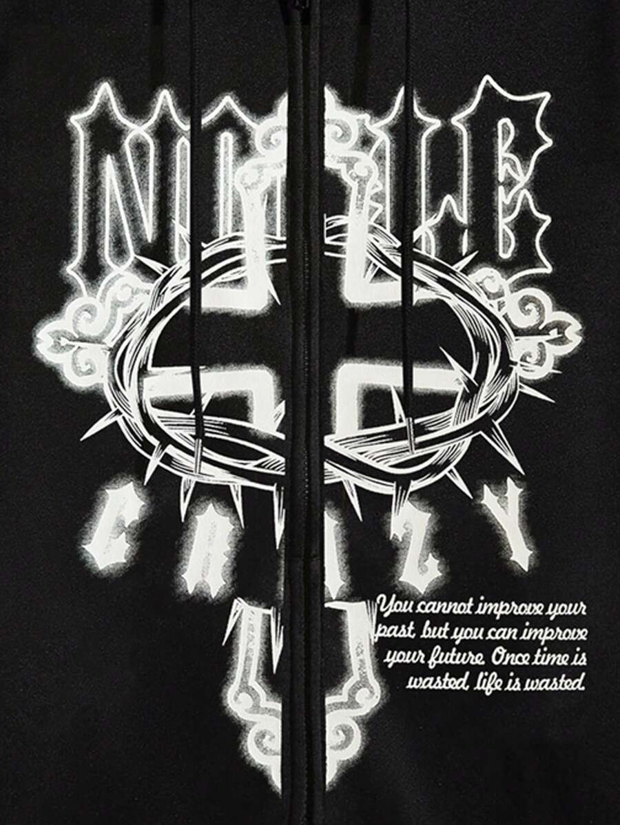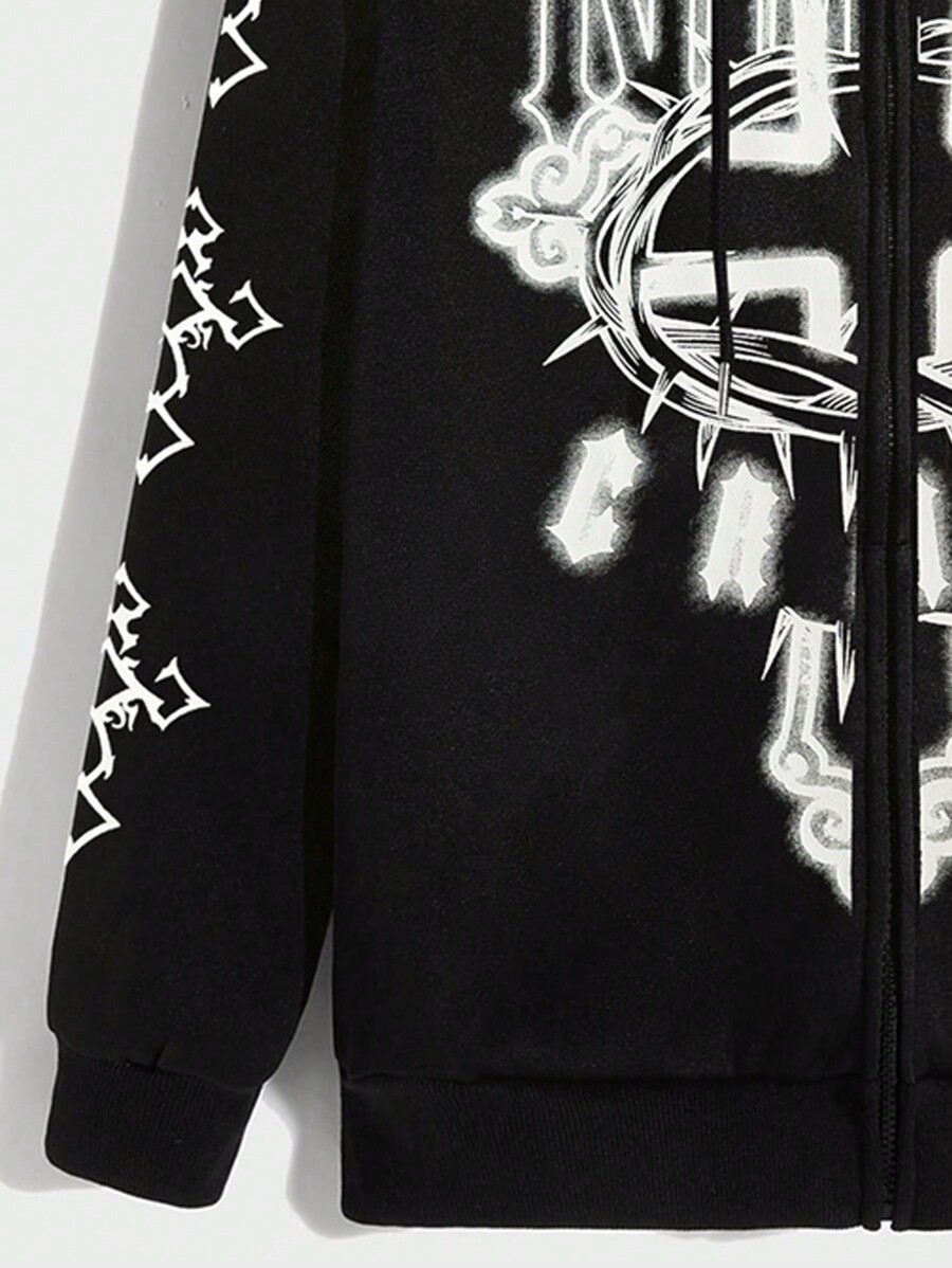 Felpa con cappuccio casual con cerniera anteriore e stampa di lettere per uomo