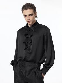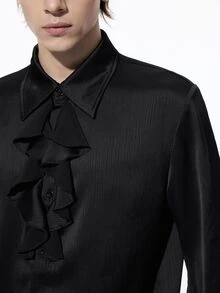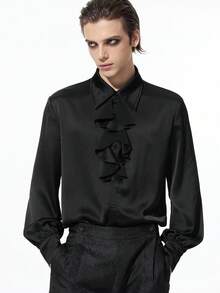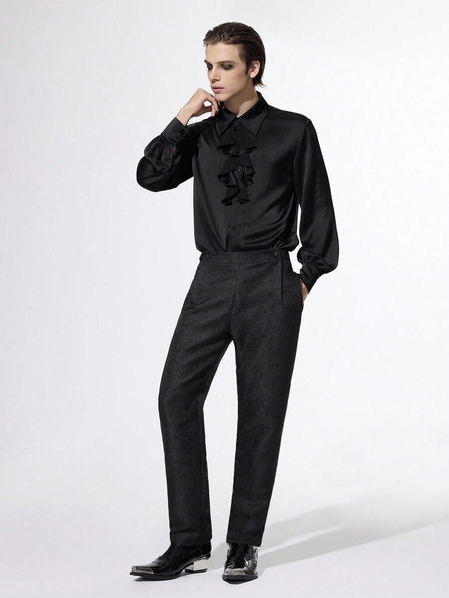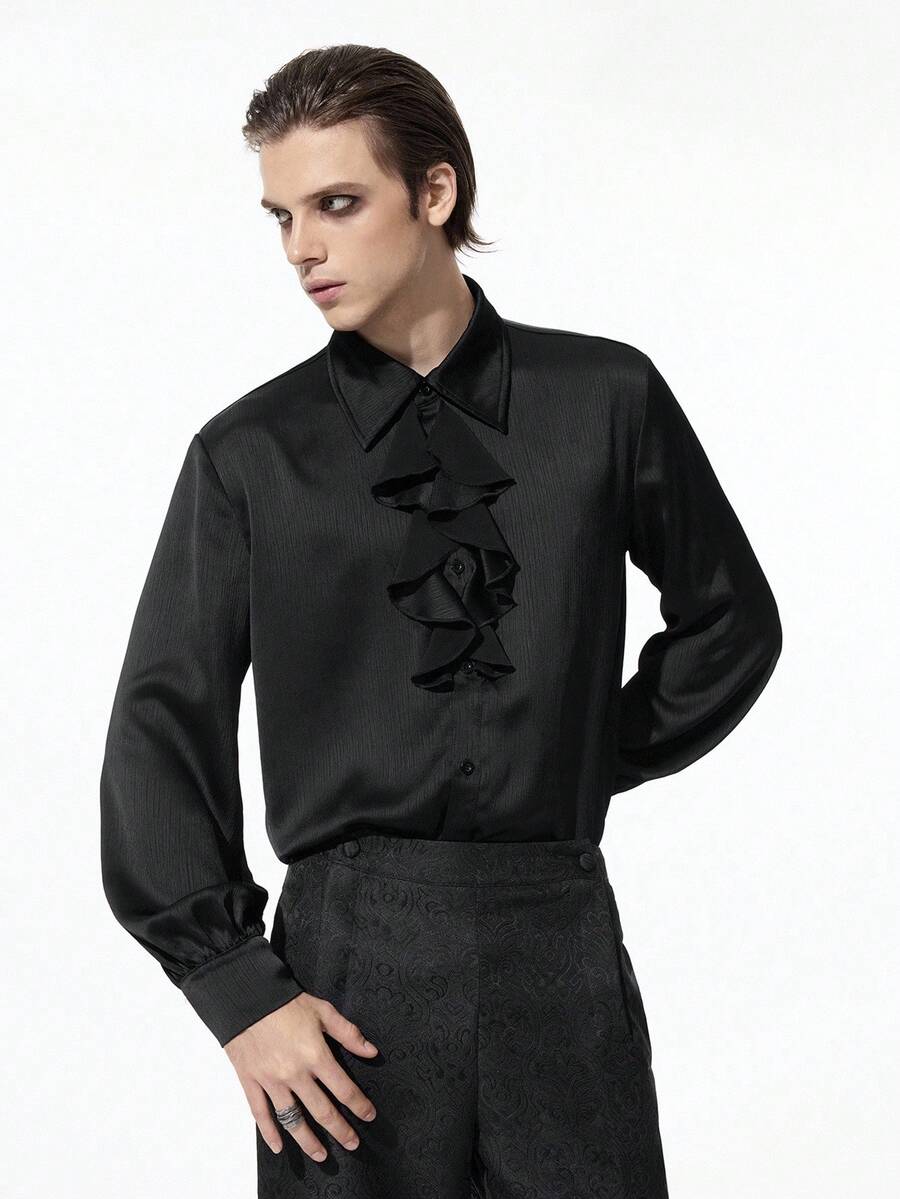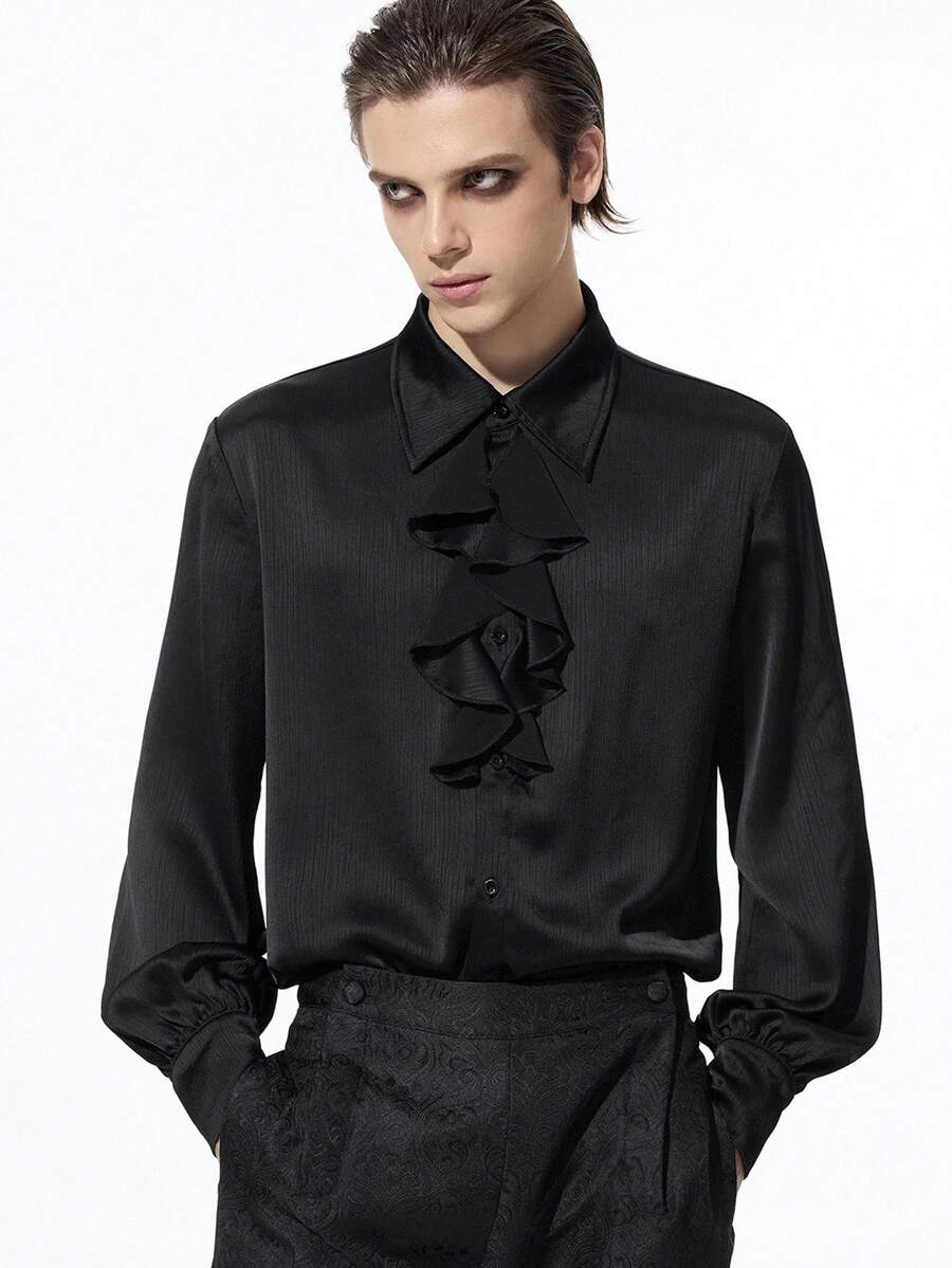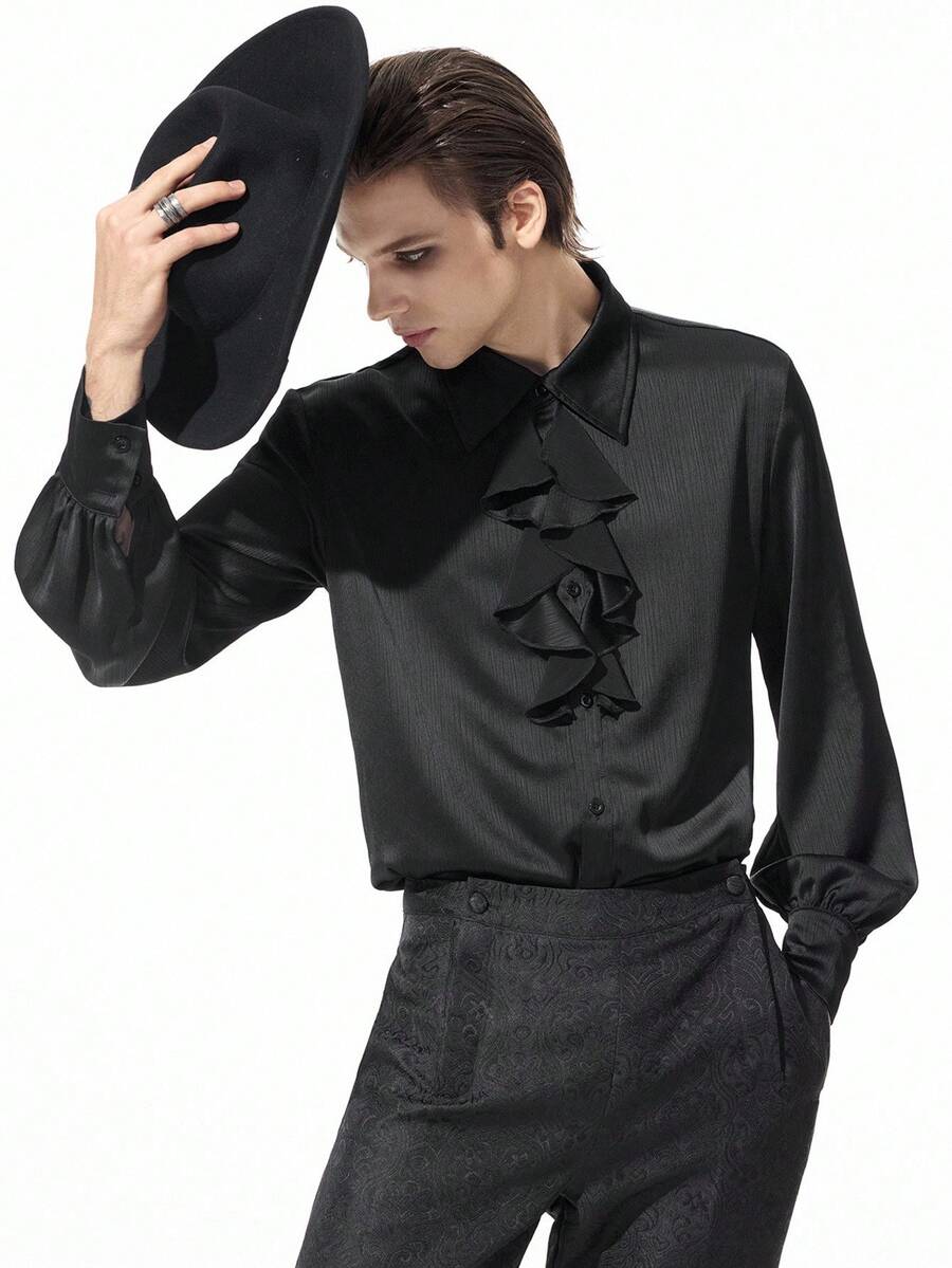 Goth Camicia elegante da uomo in stile gotico scuro con rifiniture a volant, manica lunga, autunnale