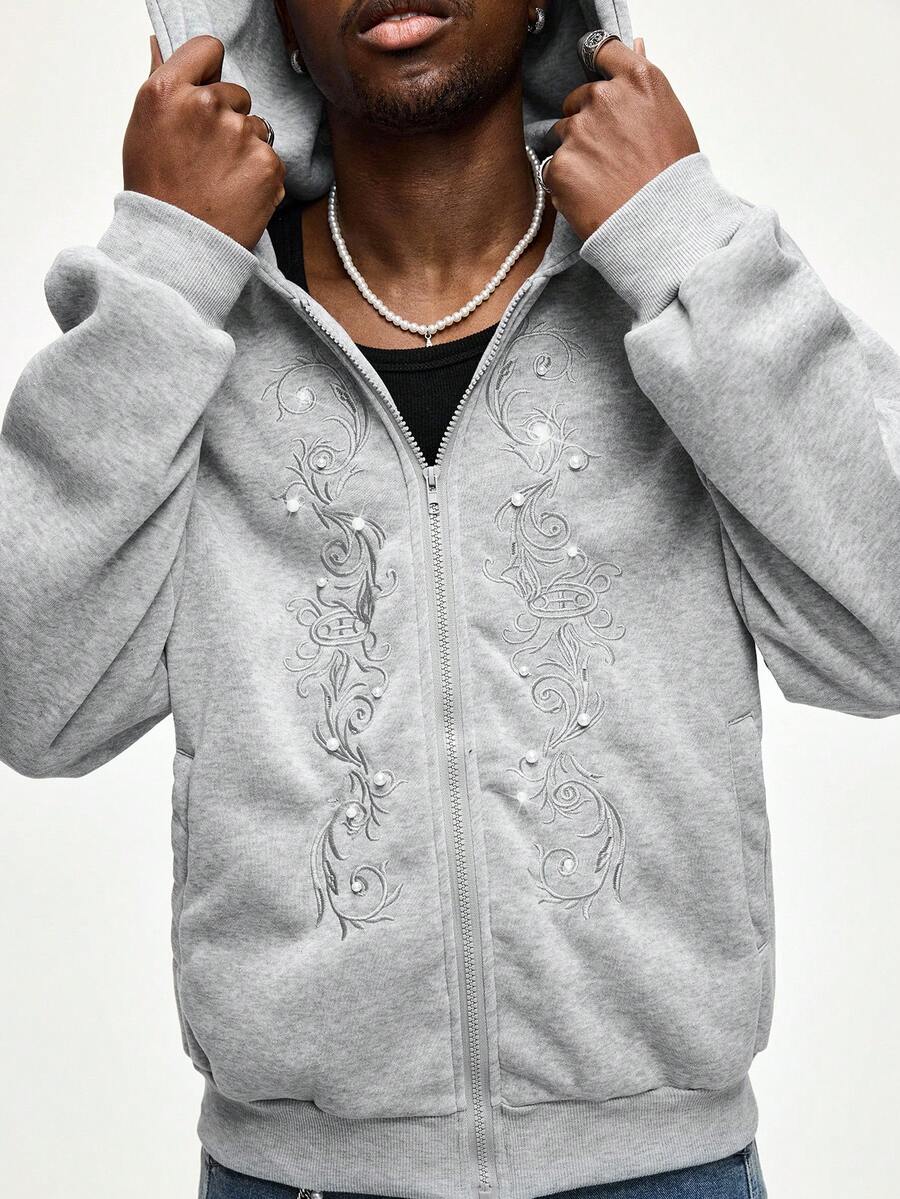 Felpa casual da uomo con ricamo gotico, stile college, autunno/inverno