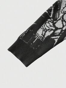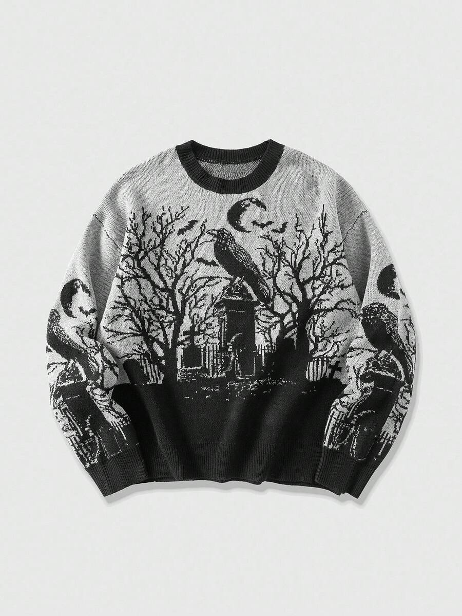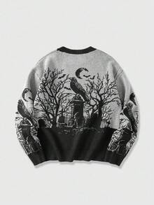 Goth Maglione casual con vestibilità ampia, lavorazione jacquard con motivi di edifici e piante, adatto per autunno/inverno