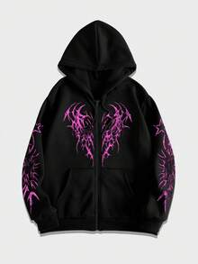 Goth Felpa con cappuccio da uomo con stampa gotica, chiusura lampo frontale e coulisse