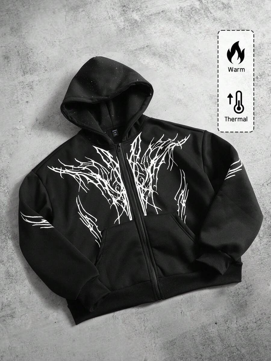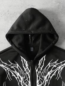 Goth Felpa con cappuccio casual con chiusura lampo e stampa gotica da uomo