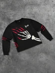 Goth Felpa con stampa teschio gotica da uomo, adatta per l'autunno/inverno