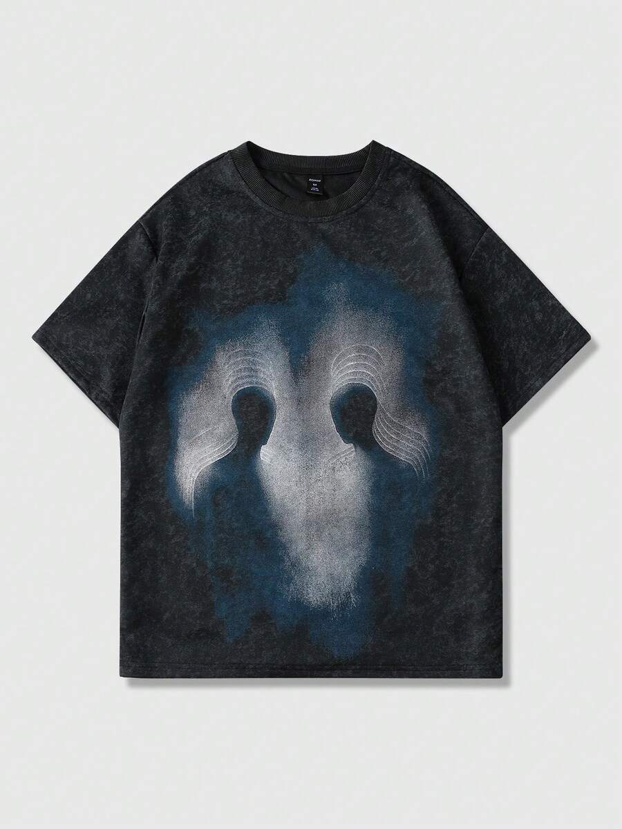 Maglietta casual da uomo a maniche corte con stampa grafica e collo rotondo