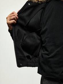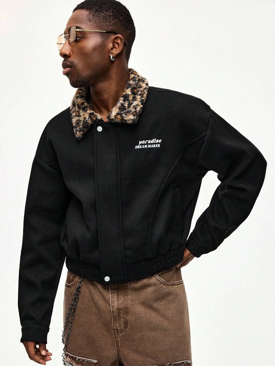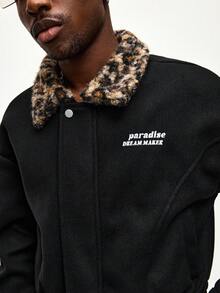Cappotto oversize da uomo con colletto a stampa leopardata, stile college, adatto per autunno/inverno