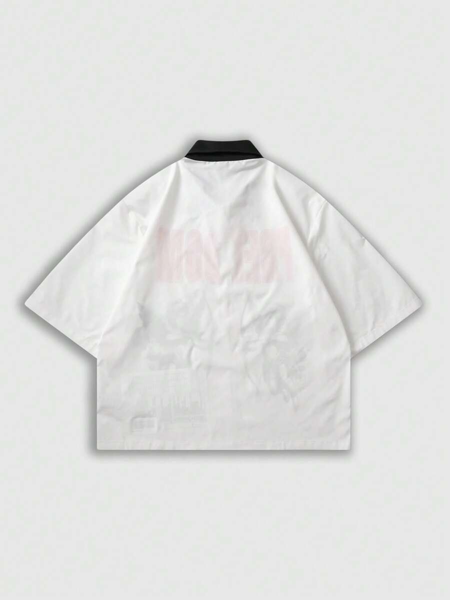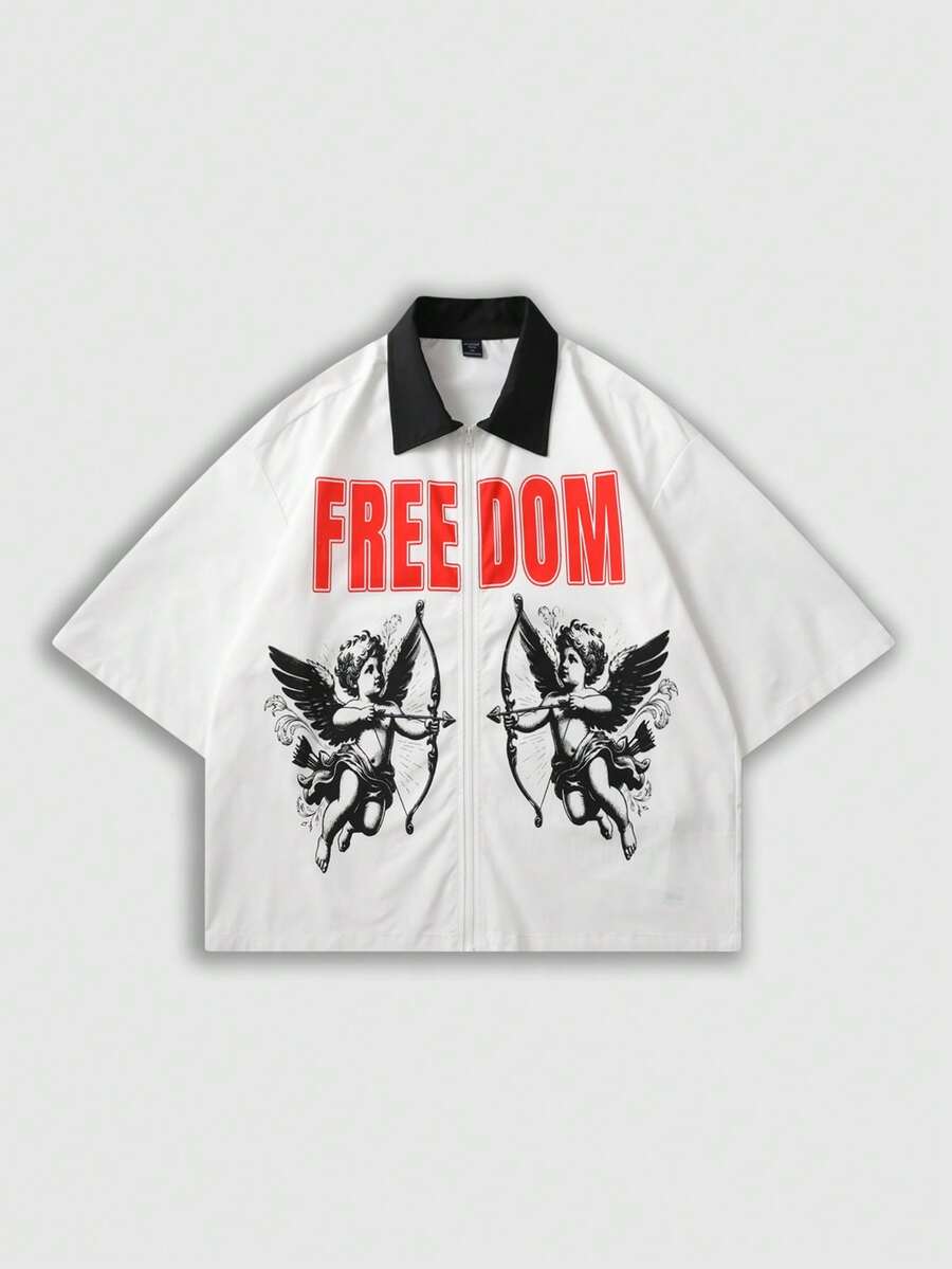 Camicia casual a maniche corte da uomo con stampa di lettere e angeli