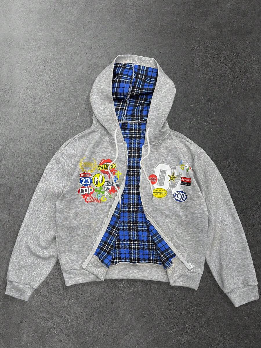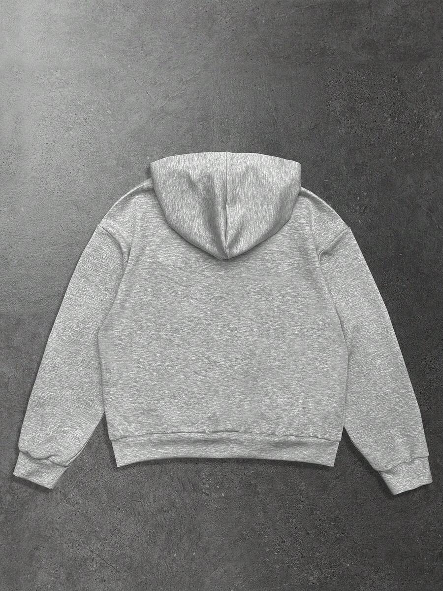 Felpa con cappuccio casual da uomo con chiusura lampo e stampa di lettere, manica lunga