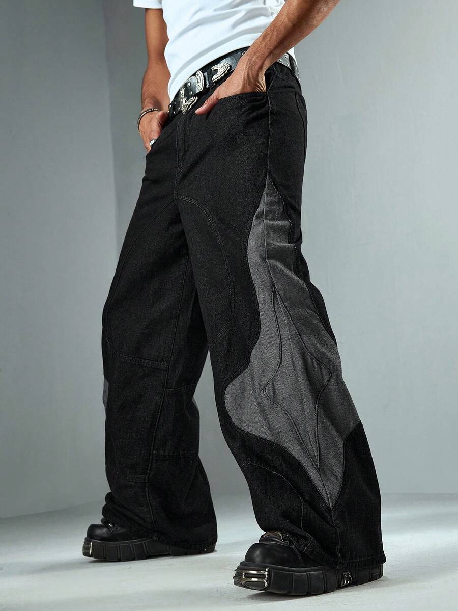 Jeans casual con gamba ampia e tasche, vestibilità morbida da uomo