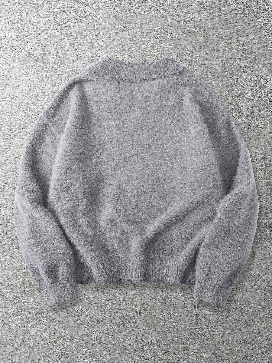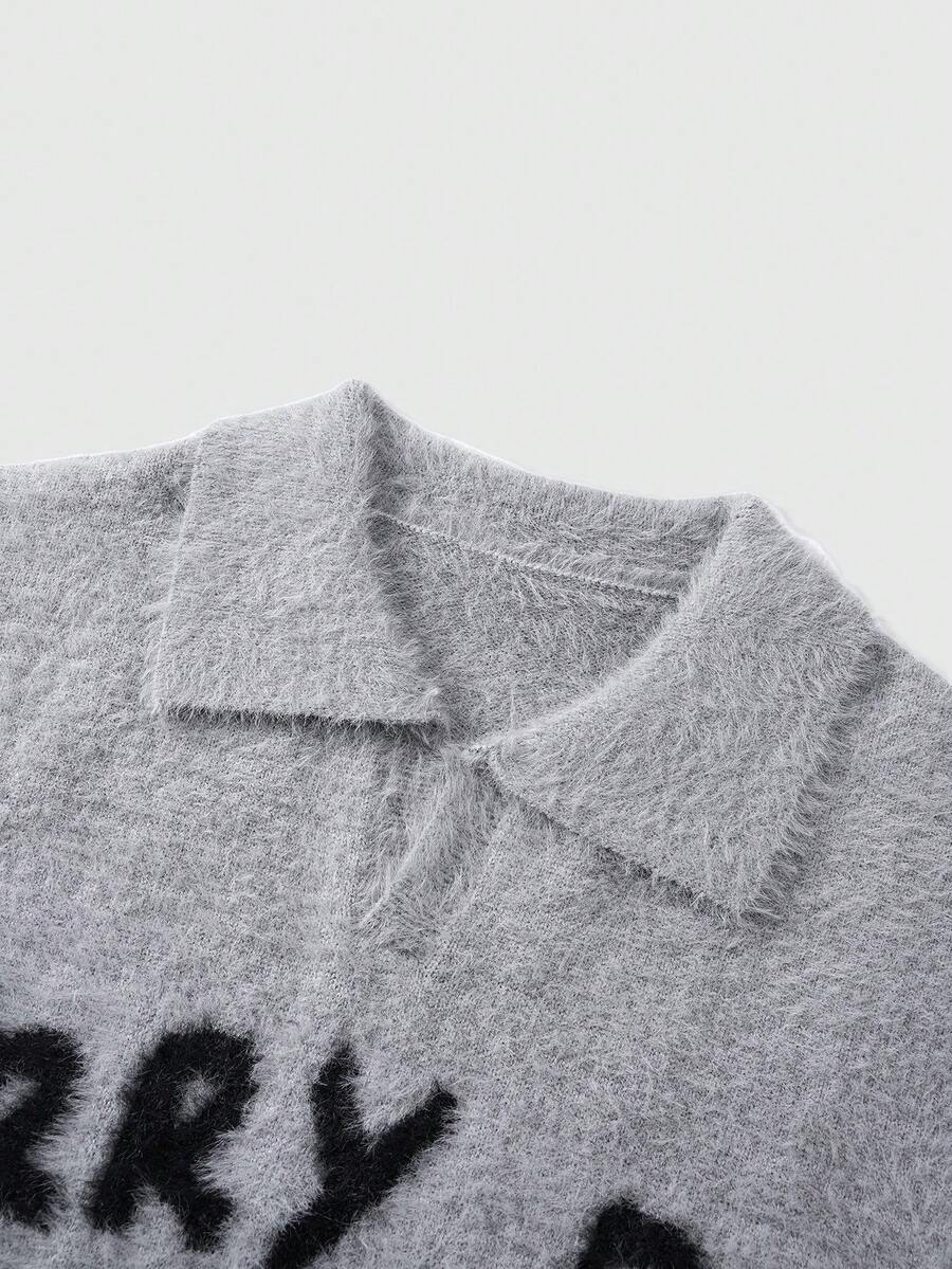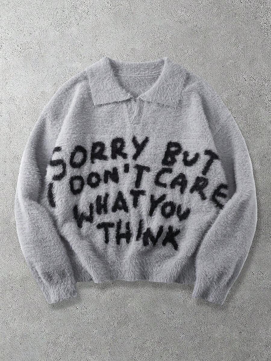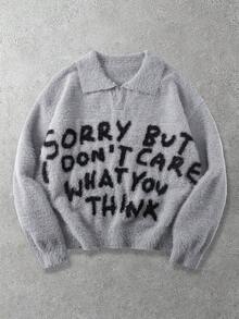 Maglione oversize da uomo con grafica e slogan, manica lunga con finta pelliccia, adatto per autunno/inverno