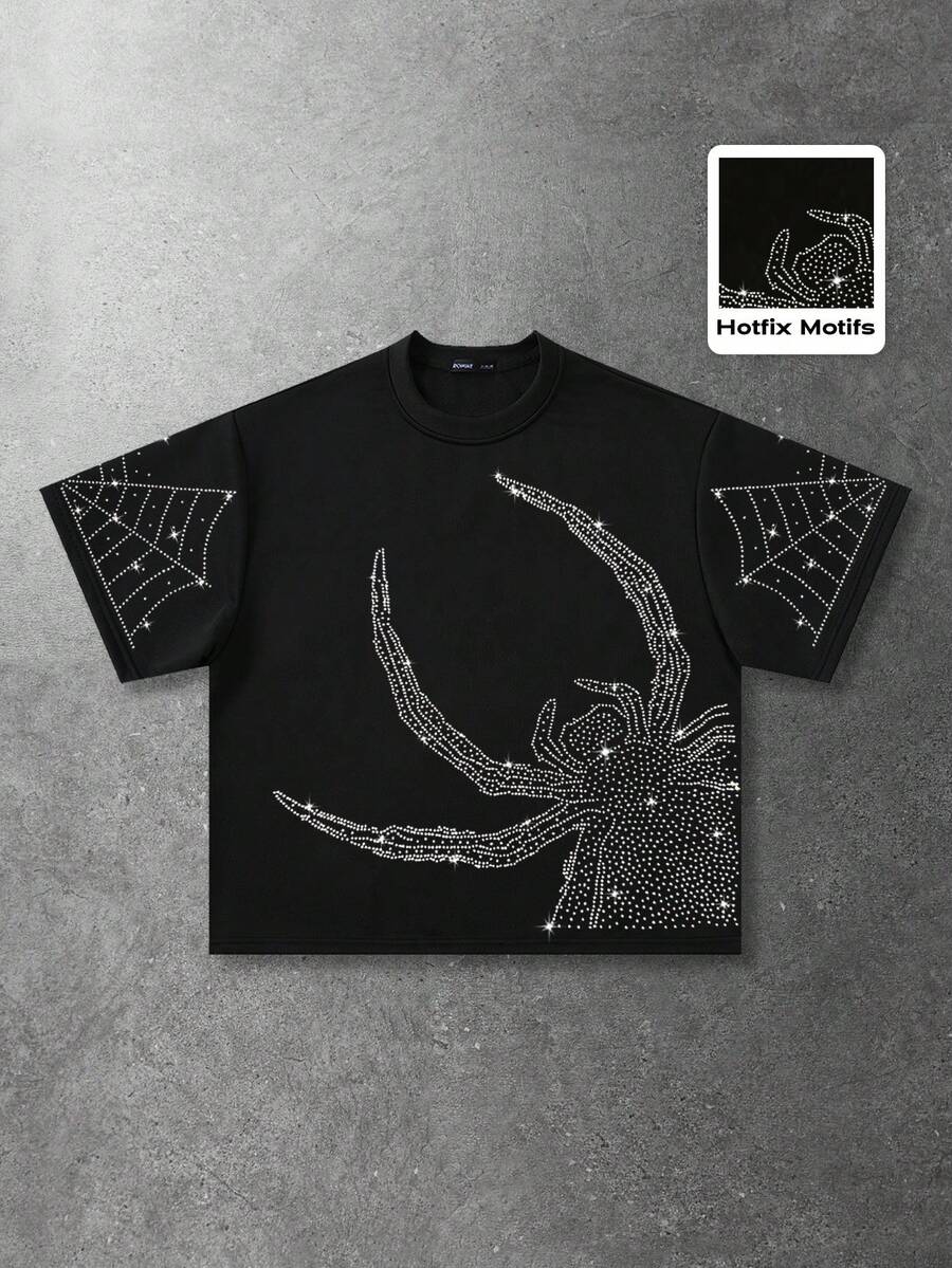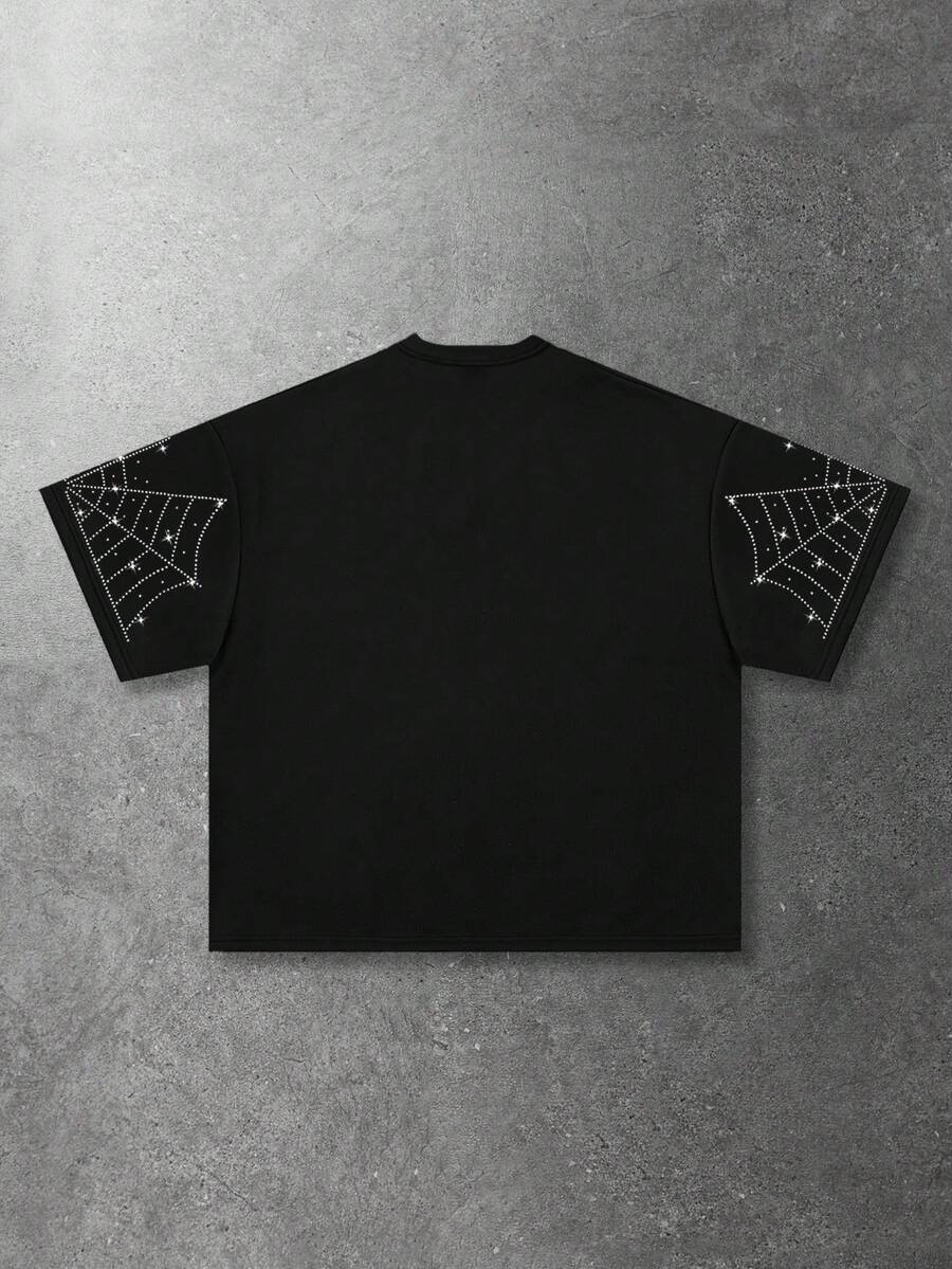 Maglietta a maniche corte con applicazioni di diamanti scintillanti, vestibilità ampia, da uomo
