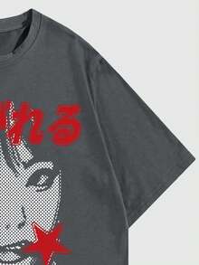 Anime maglietta a maniche corte da uomo con stampa grafica minimalista e collo rotondo