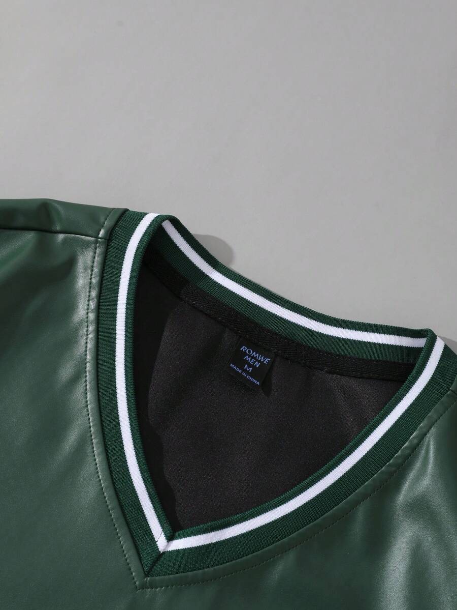 Maglietta a maniche corte in pelle sintetica oversize, stile retrò da strada per uomo