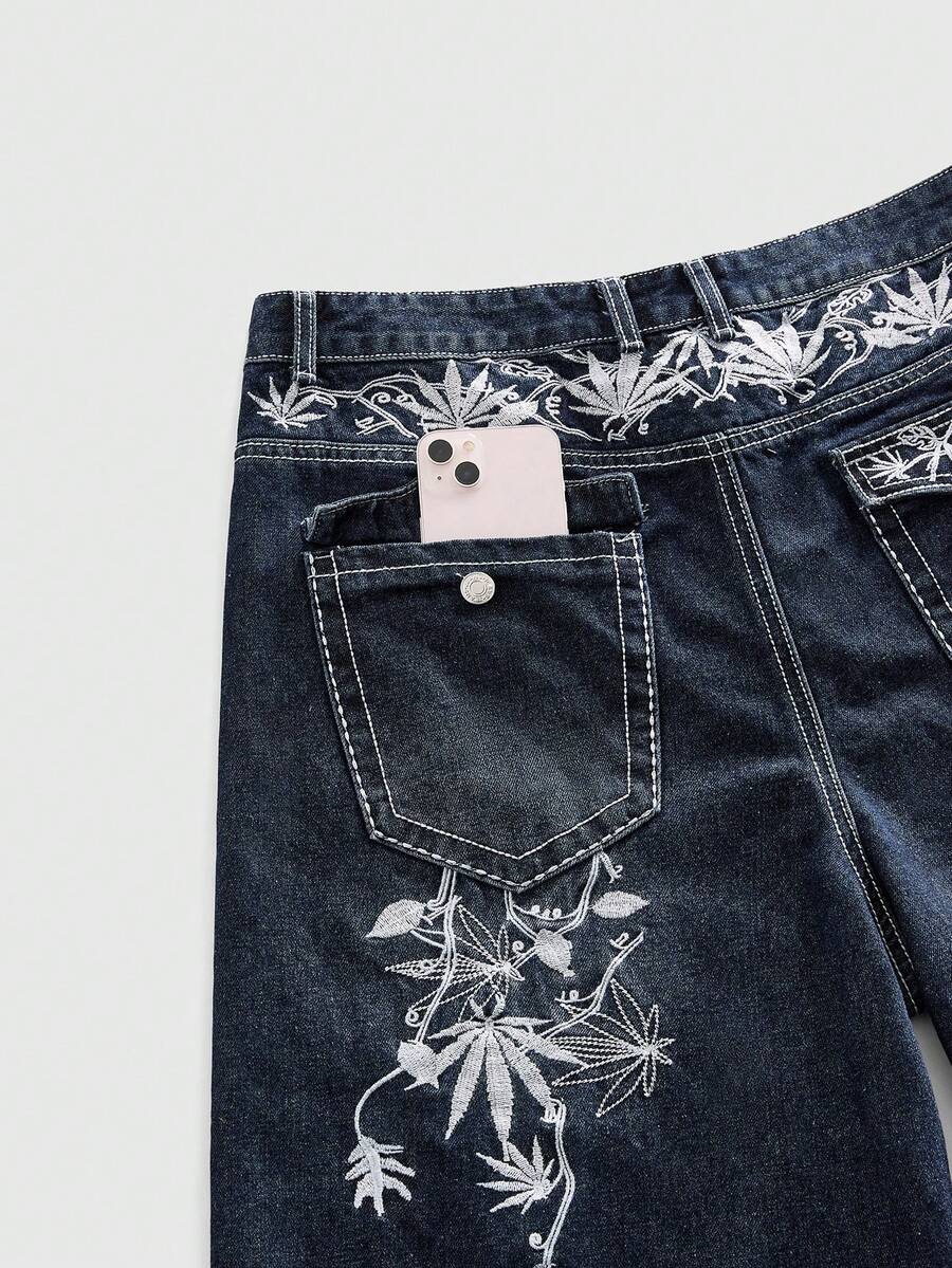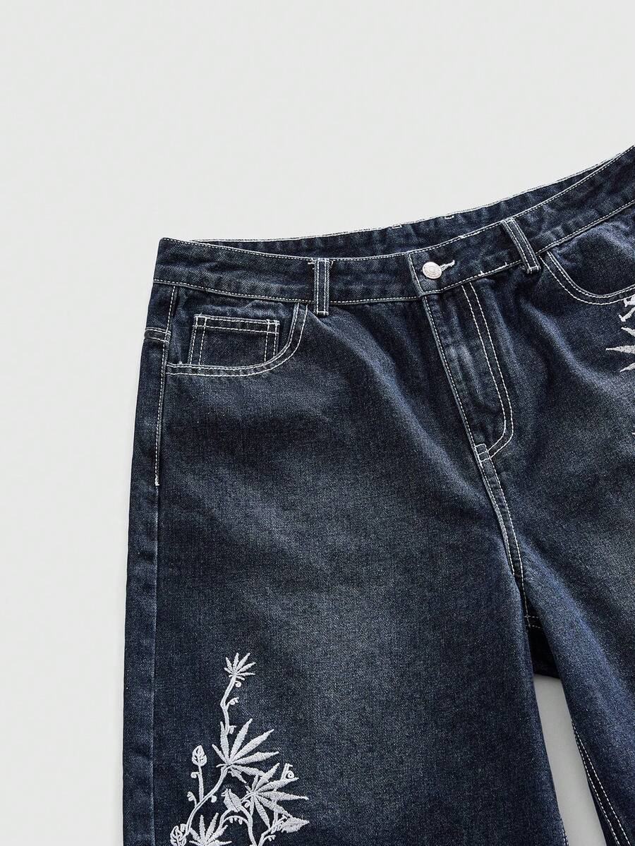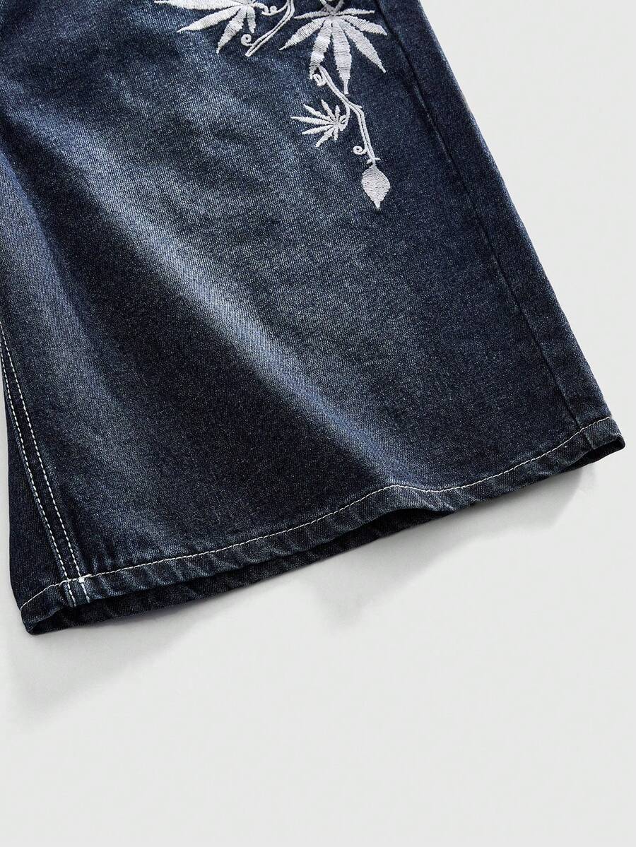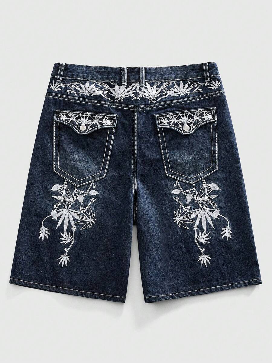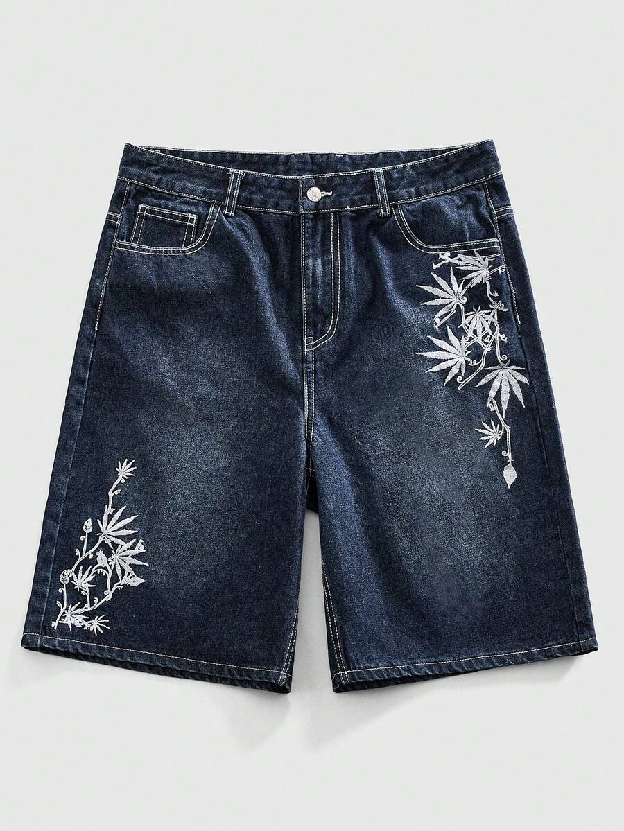 Pantaloncini di jeans casual da uomo con ricamo floreale sulla tasca