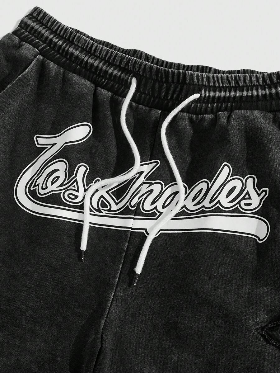 Prep Pantaloncini casual da uomo con tasche e stampa a lettere con lacci anteriori