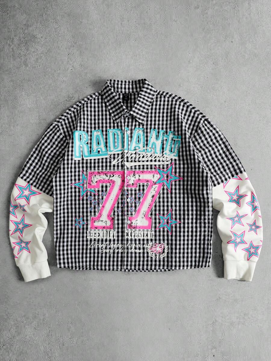 Camicia da uomo con stampa a quadri, vestibilità ampia