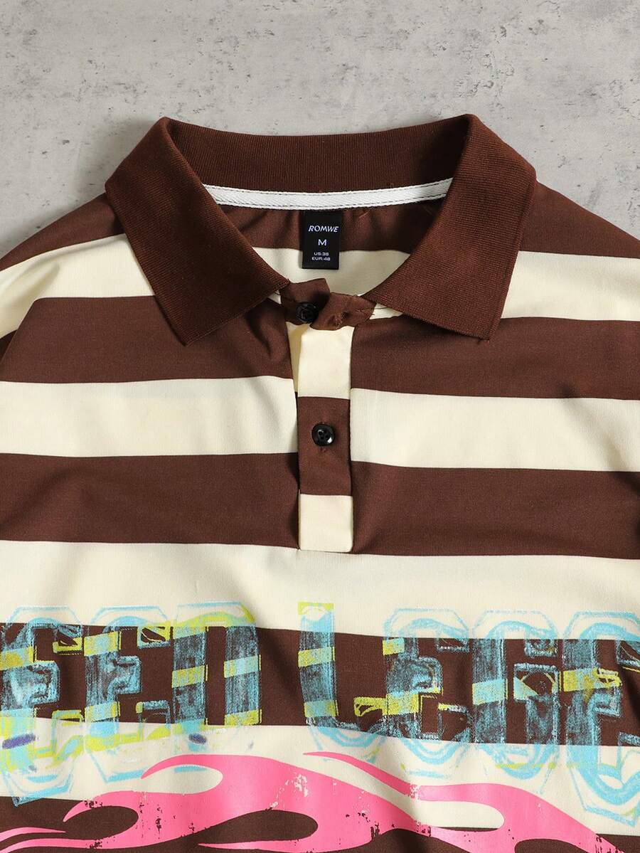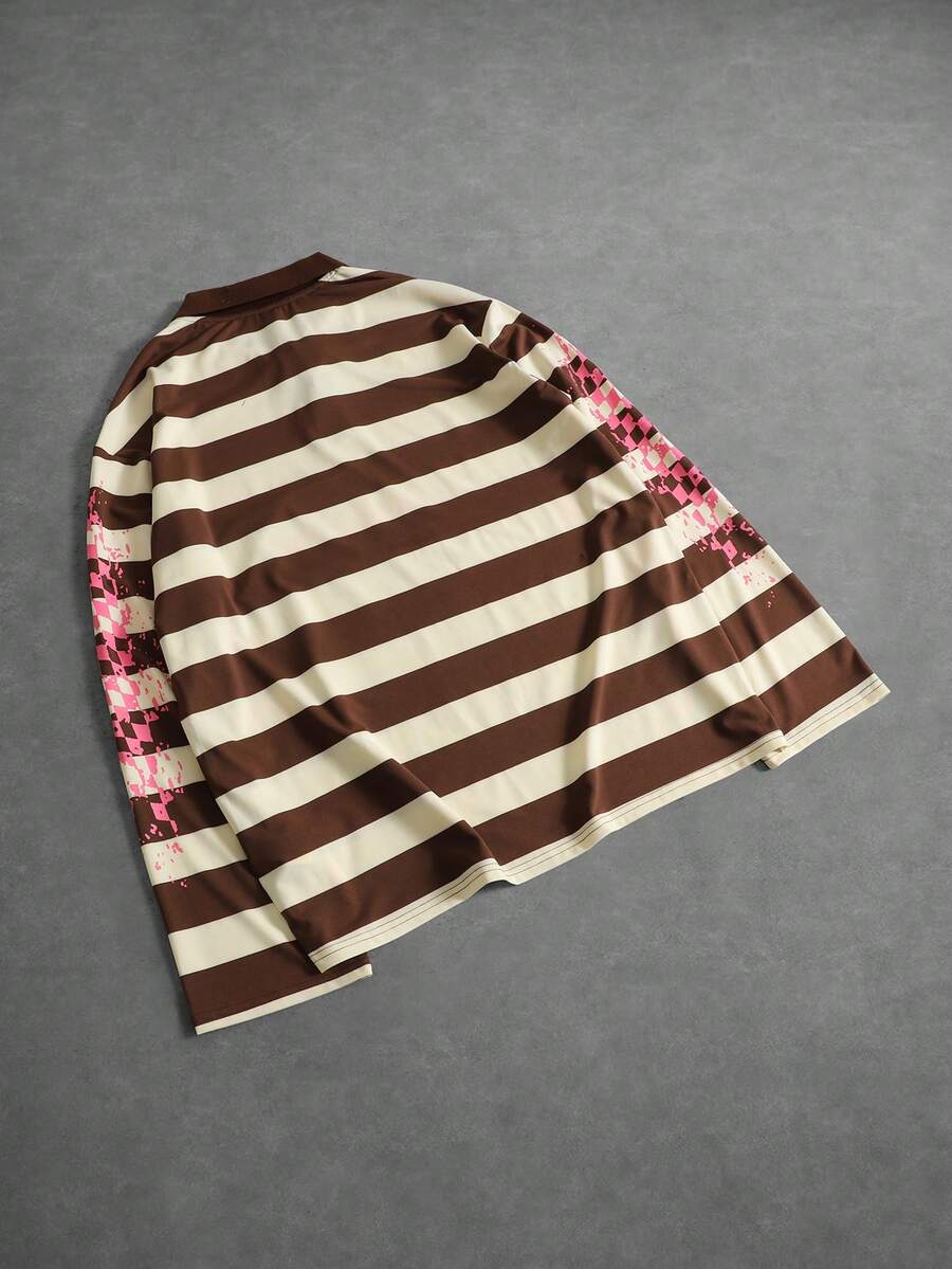 Camicia polo da uomo con stampa a righe, vestibilità morbida