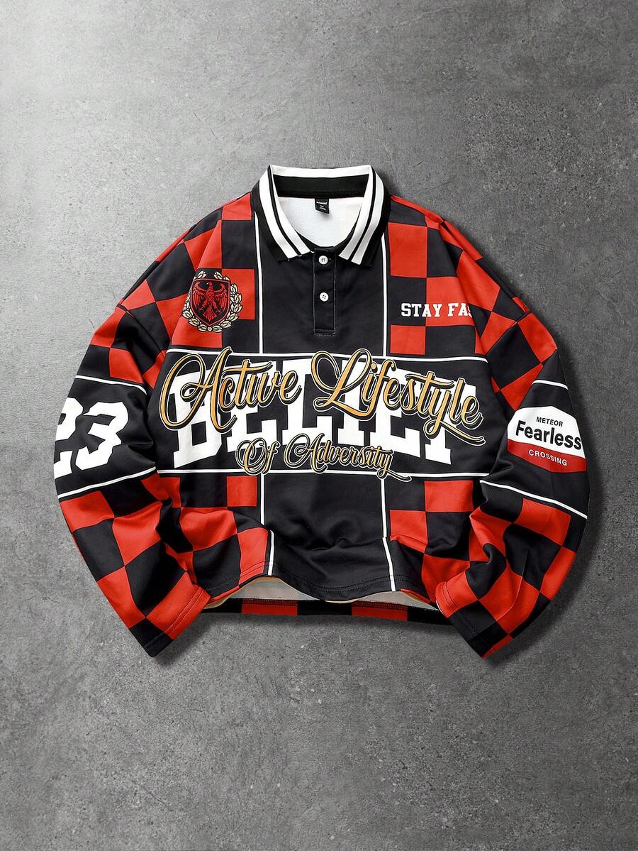 Felpa uomo, felpa con stampa a scacchi americana casual da strada