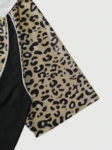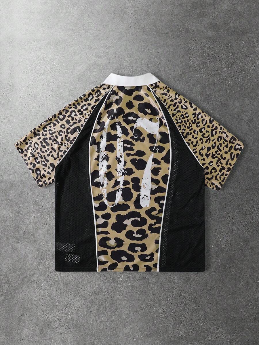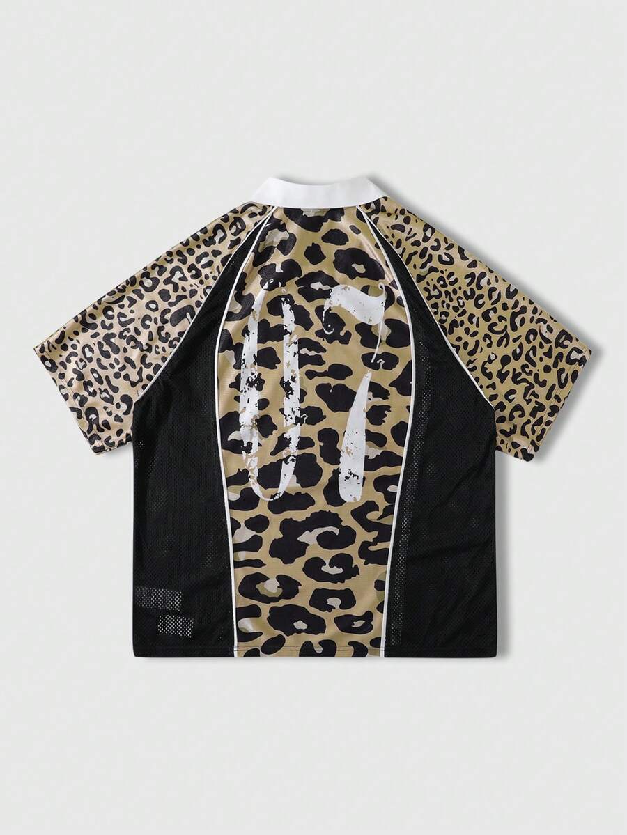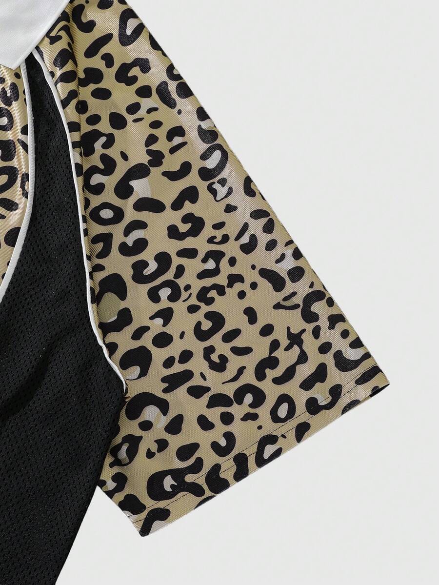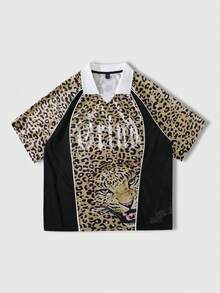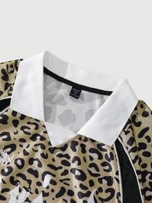 Polo a maniche raglan casual da uomo con mezza chiusura lampo e stampa leopardata