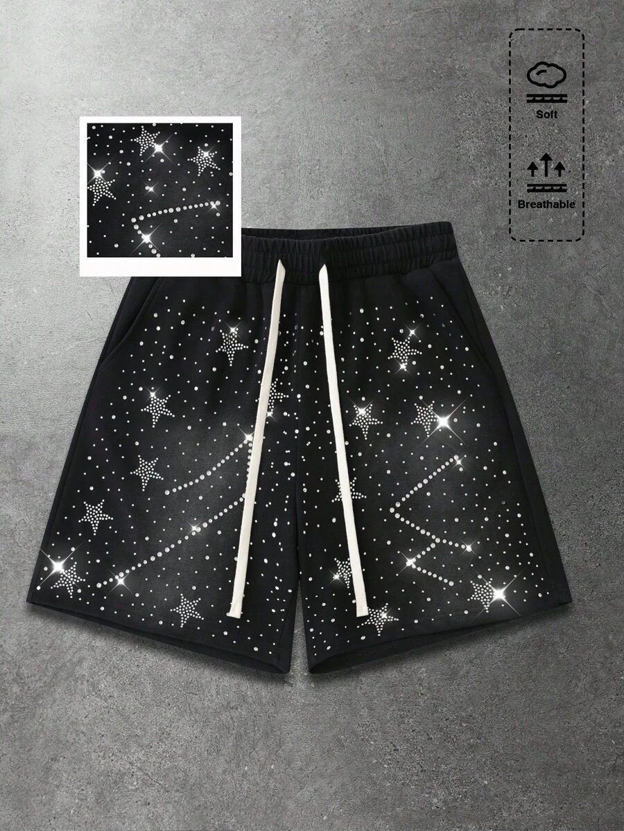 Pantaloncini da uomo con vita regolabile e stampa di stelle con strass