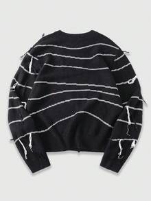 Maglione da uomo con collo rotondo, design a righe e frange, versatile e adatto per l'uso quotidiano, autunno/inverno