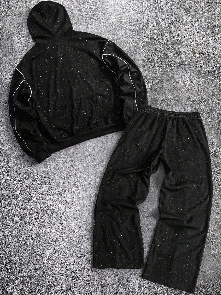 Tuta casual da uomo con felpa con cappuccio e pantaloni in tessuto con paillettes