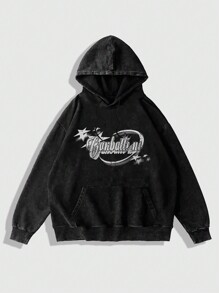 Prep Felpa con cappuccio semplice da uomo con stampa e tasche oblique, felpa girocollo a maniche lunghe, colore nero