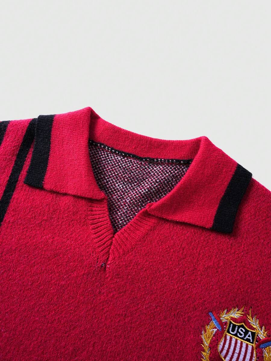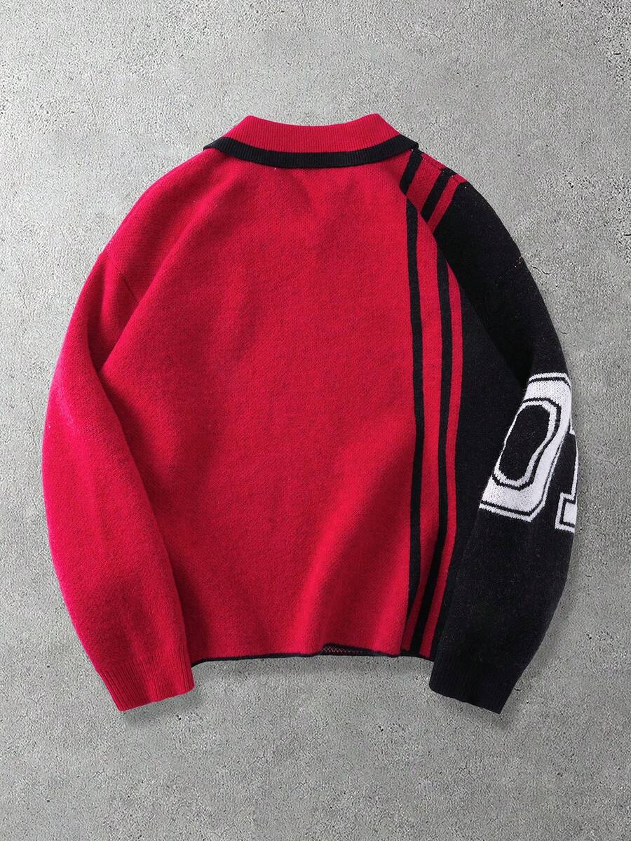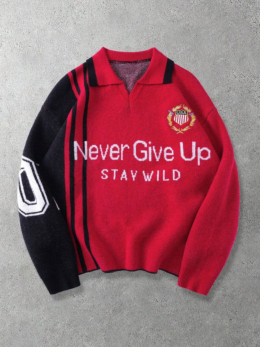 Maglione casual oversize da uomo con colletto alla coreana, maniche lunghe, motivo con slogan e ricamo