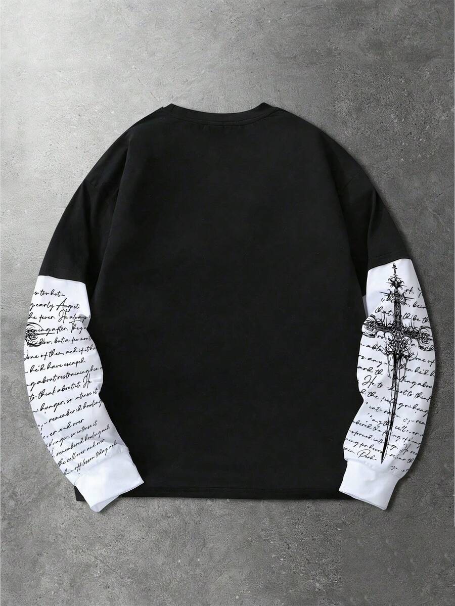 Maglietta casual da uomo a girocollo, manica lunga, con stampa di slogan e ali