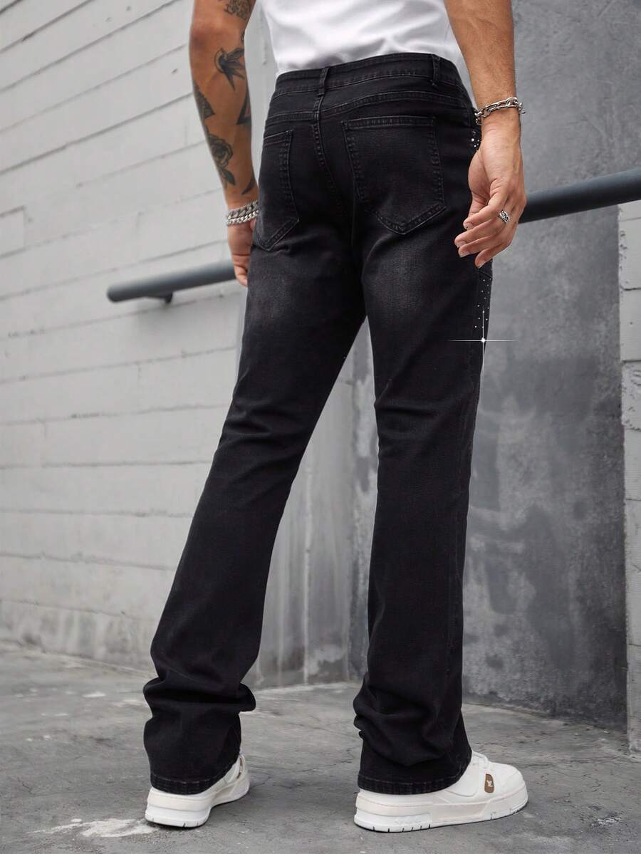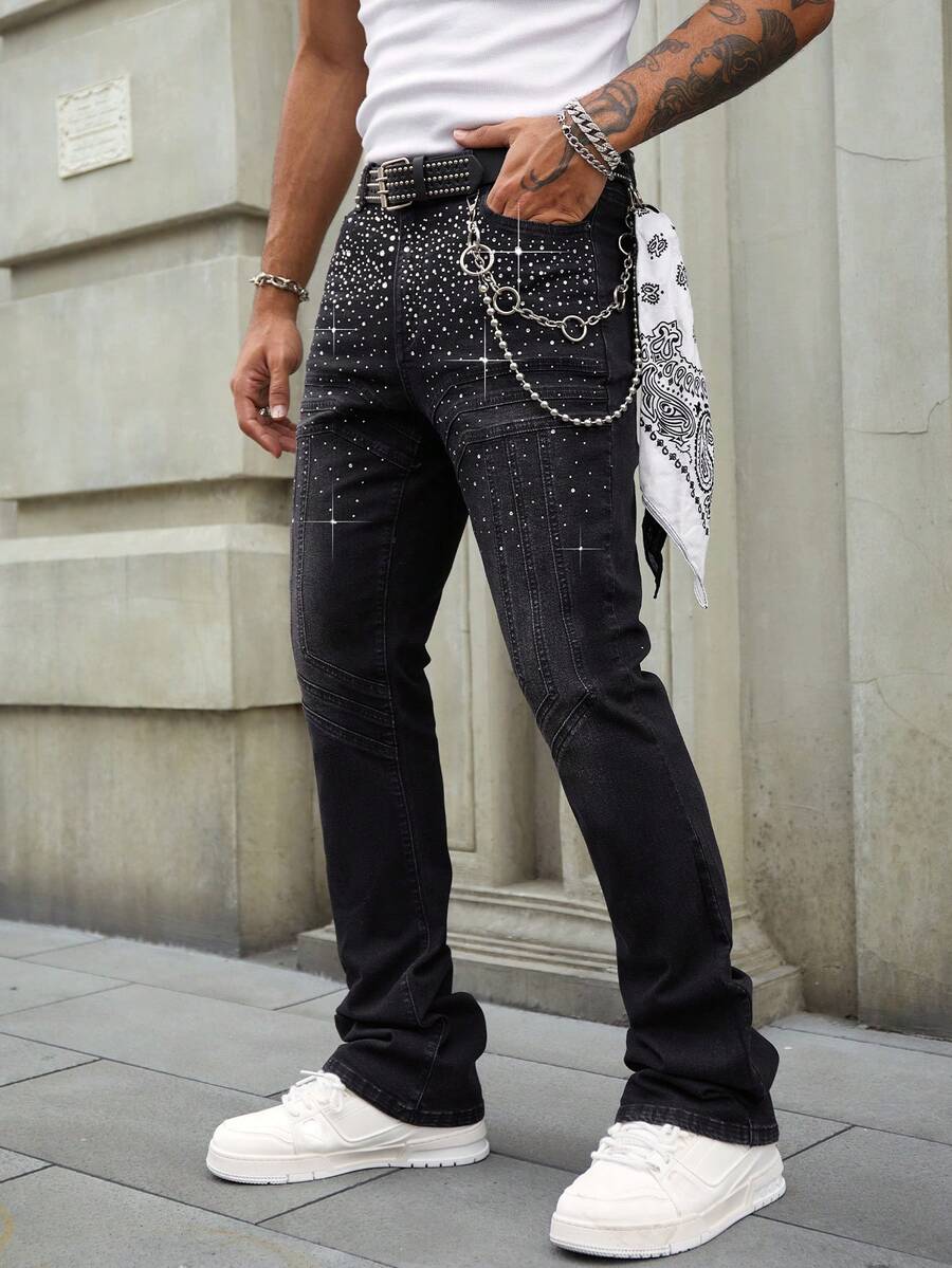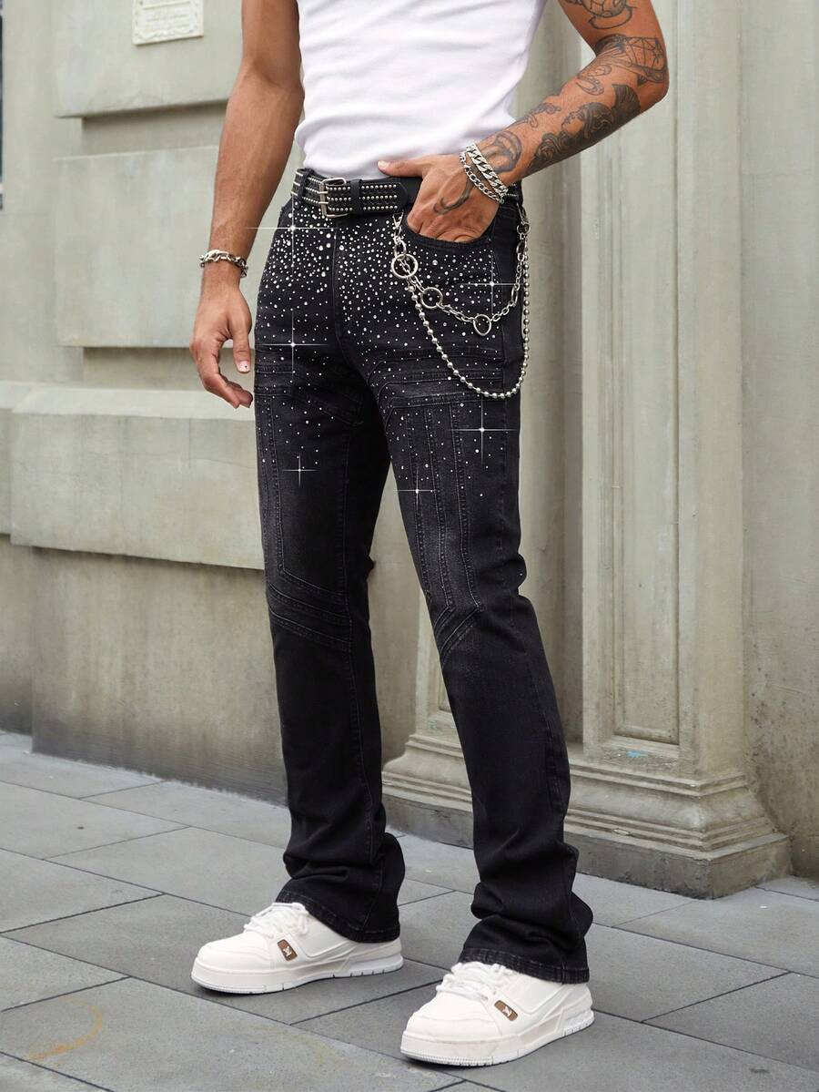 Street Life Jeans con tasche con strass a strati e gamba a zampa d'elefante con luci lampeggianti per uomo