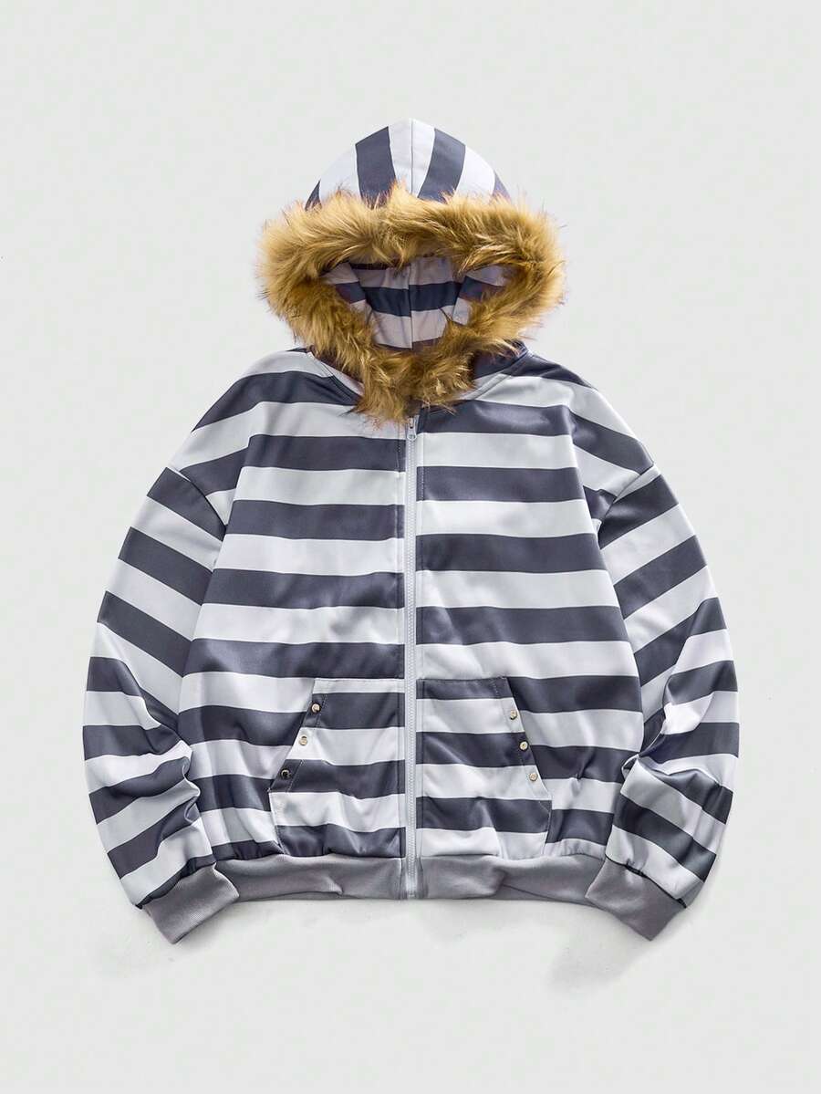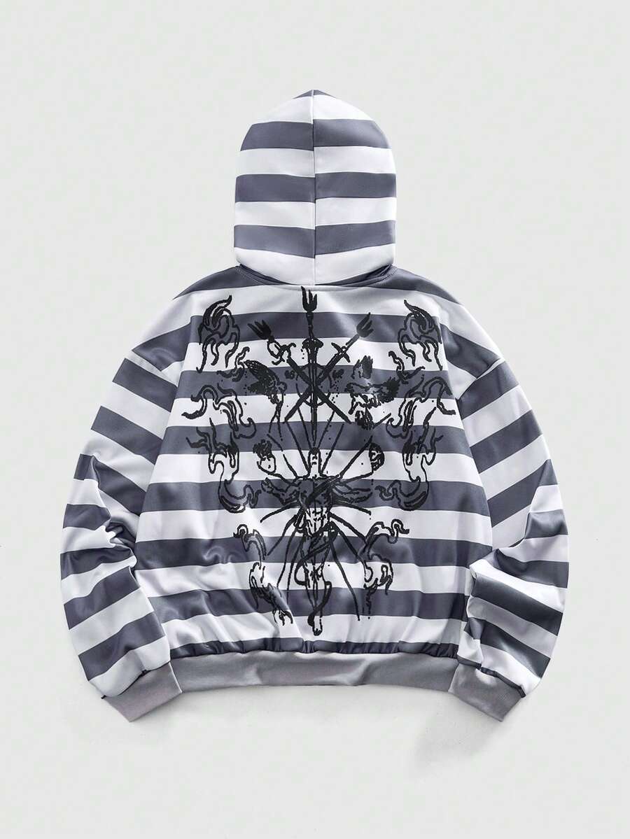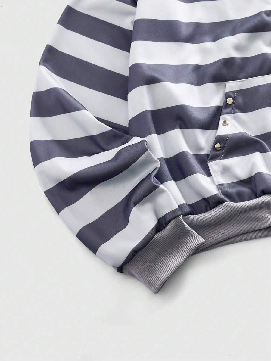 Felpa con cappuccio casual da uomo a righe scure da strada, autunno/inverno