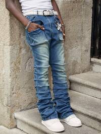 Street Life Jeans casual blu vintage con vestibilità morbida e strass luccicanti per uomo