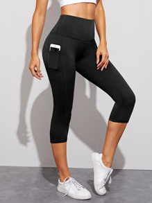 Leggings da allenamento a lunghezza polpaccio, alta elasticità, controllo addominale, leggings attivi con tasche laterali, pantaloni da yoga per donne