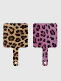 Grunge Punk 1 pezzo Specchio tascabile pieghevole a doppia faccia in PU con stampa leopardata, portatile, specchio metallico creativo per donne/studenti, con design a motivi floreali casuali