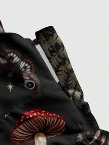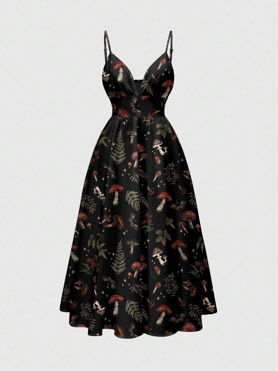 Fairycore Abito da donna stile bohémien romantico con stampa di funghi e motivi celesti, con spalline sottili e scollo basso, sexy