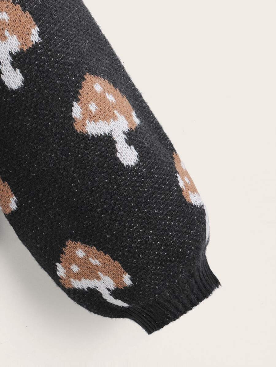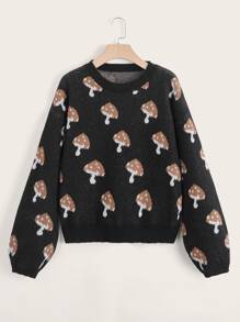 Maglione motivo fungo manica a sbuffo