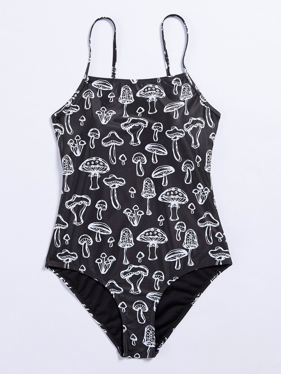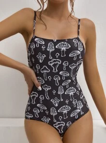 Costume da bagno intero con stampa a fungo