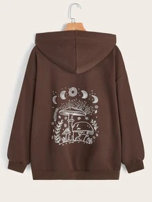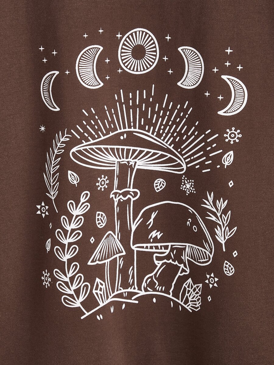 Felpa con cappuccio e zip con stampa funghi