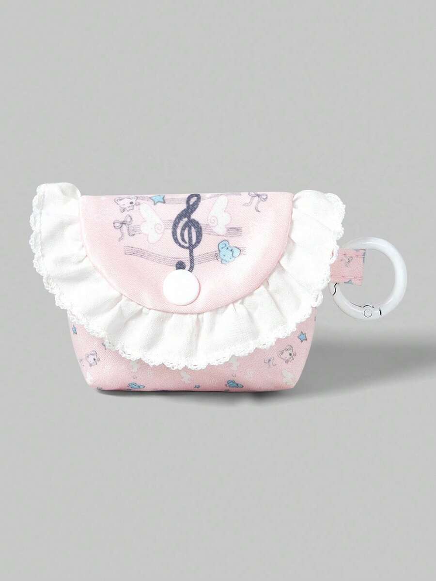 Kawaii Custodia portatile mini, portamonete, custodia per auricolari, portachiavi con motivo a note musicali e quadri