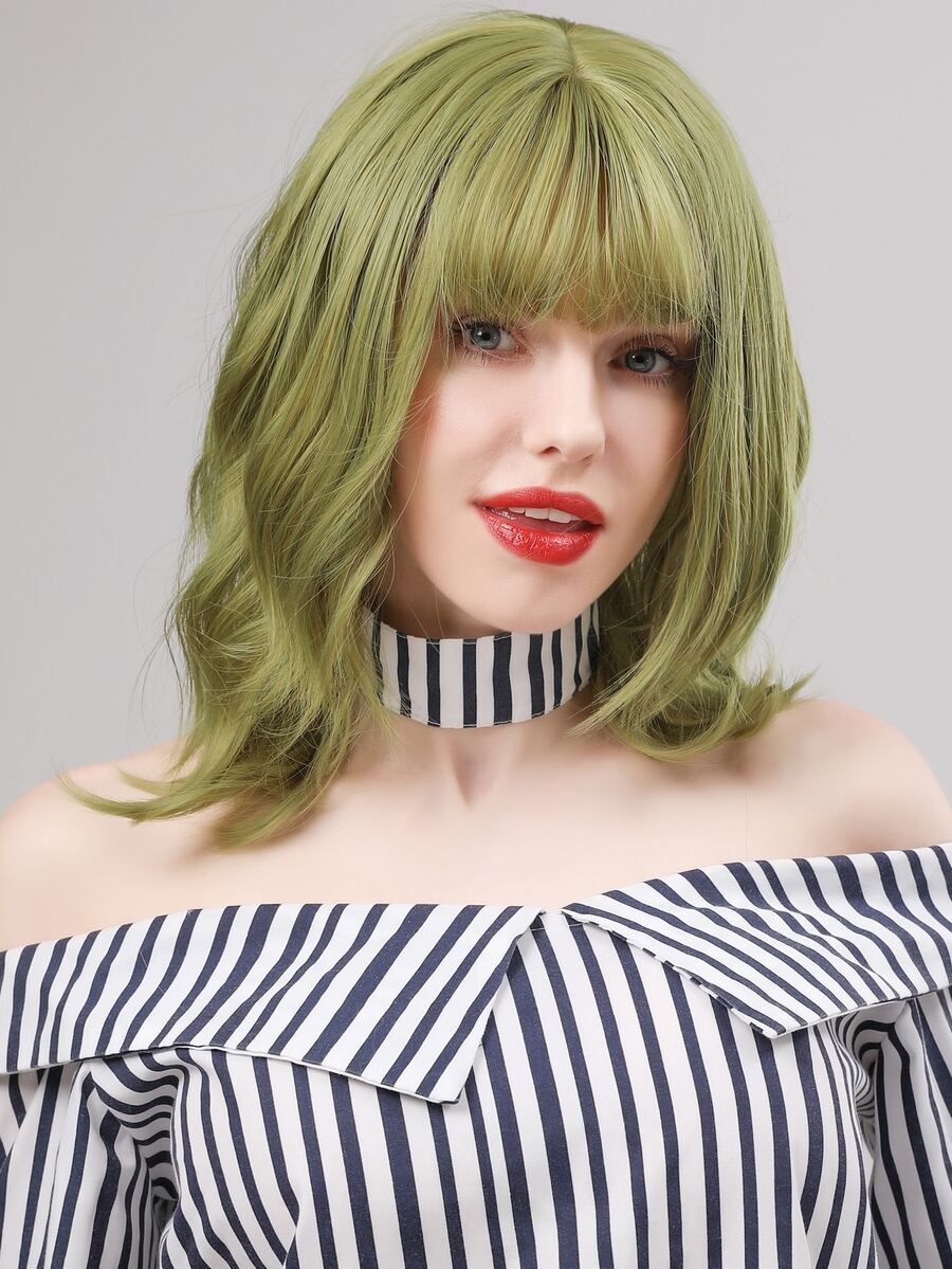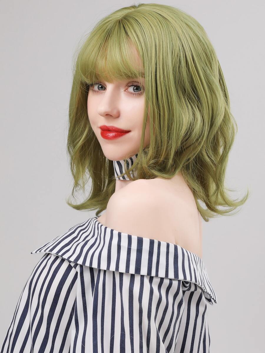 Parrucca corta riccia naturale con frangia