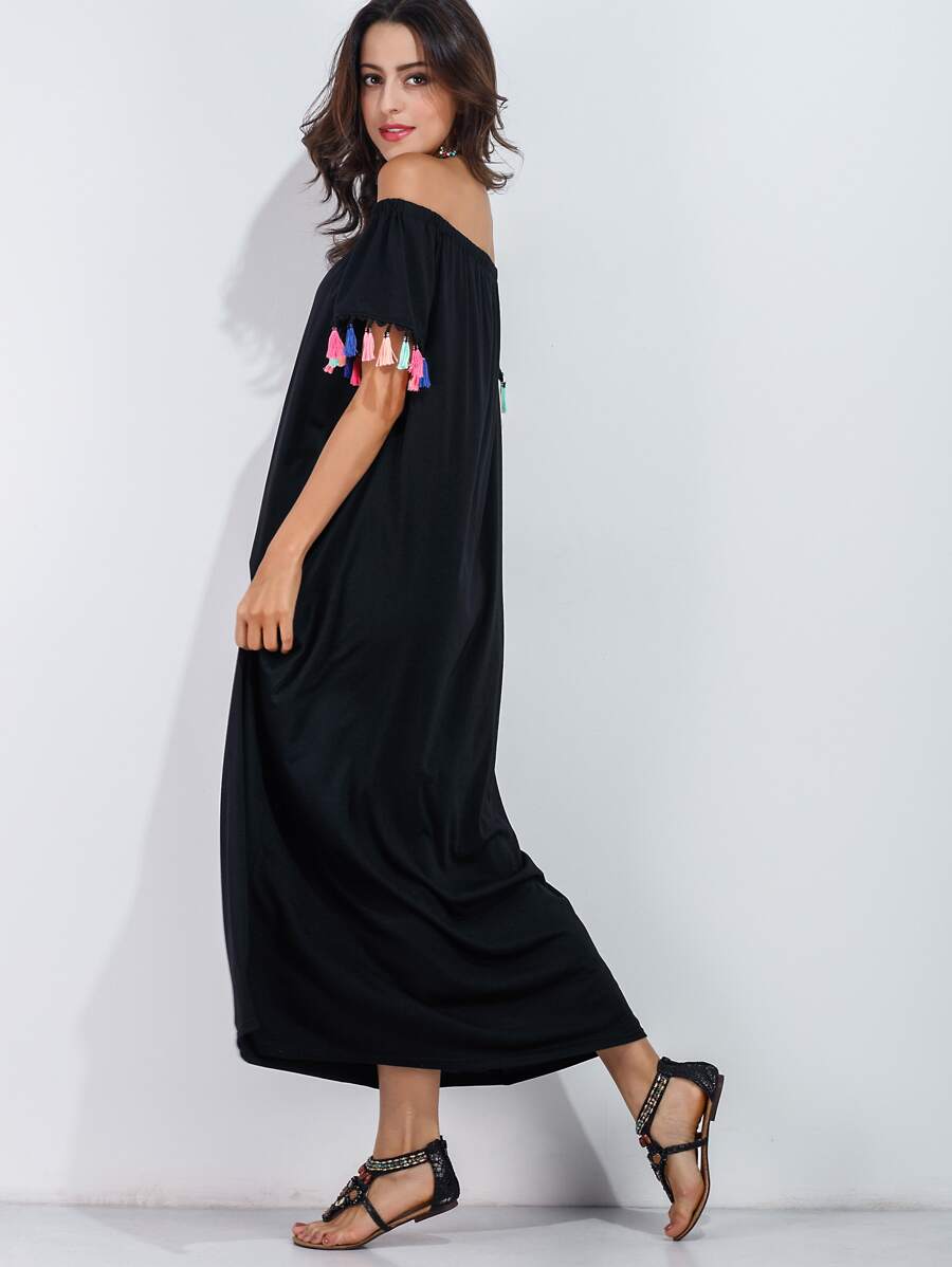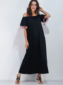 Abito senza spalline e maniche a frange