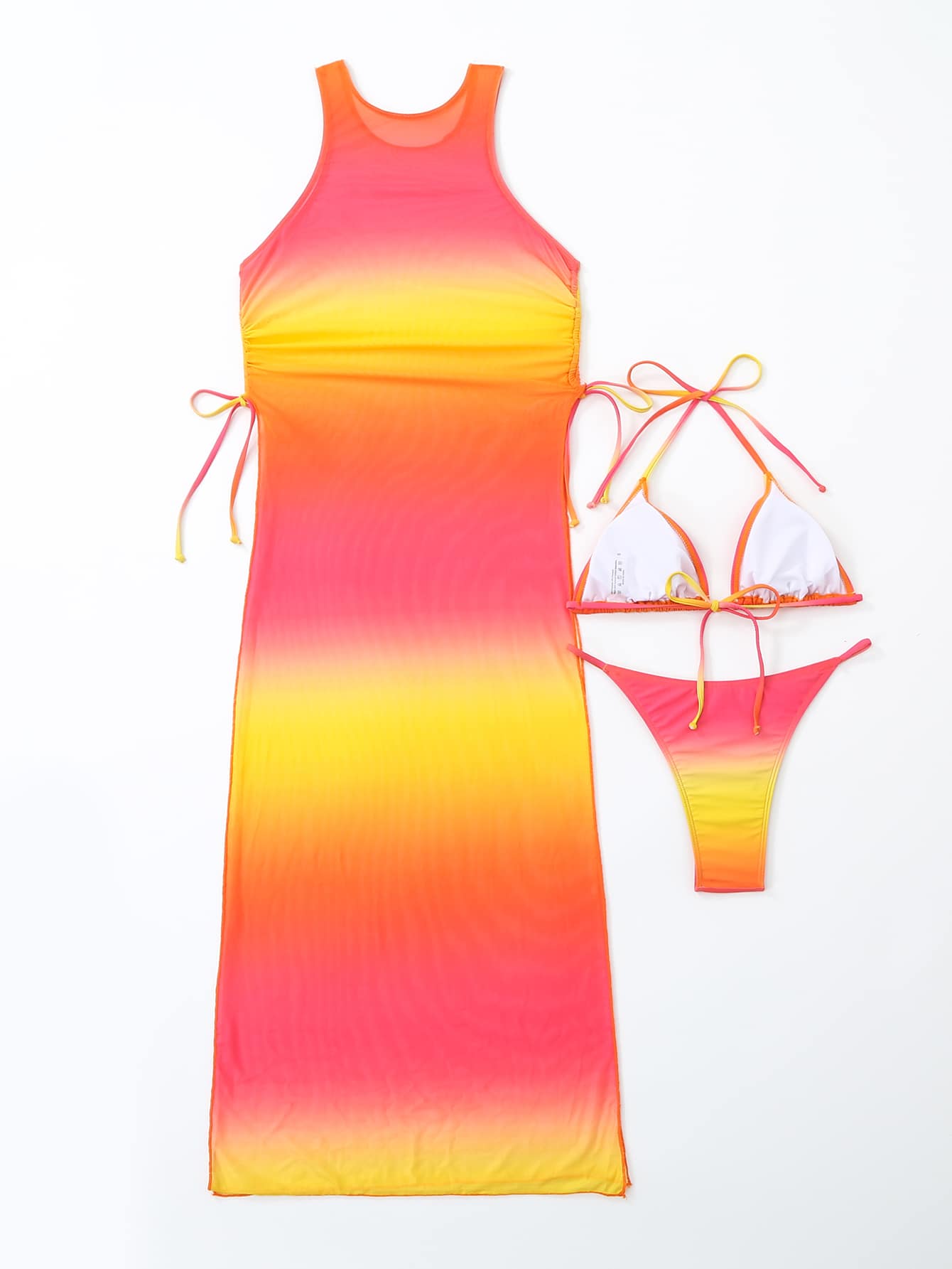 Set bikini ombre a triangolo con halter per la spiaggia estiva con copertura