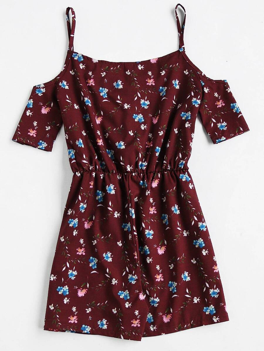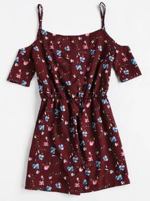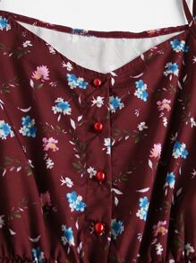 Open Shoulder Ditsy Print Random Single Breasted Romper