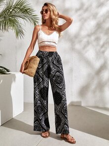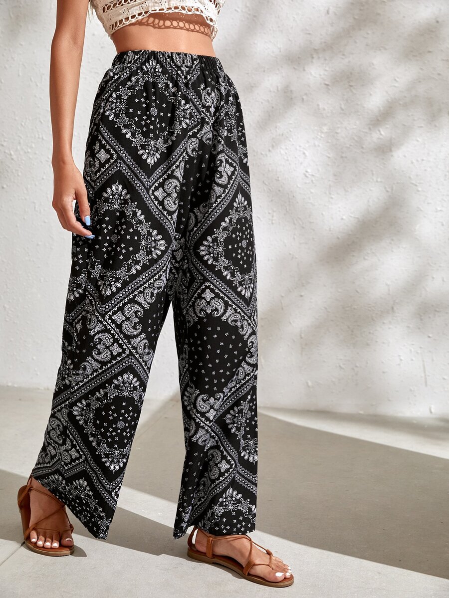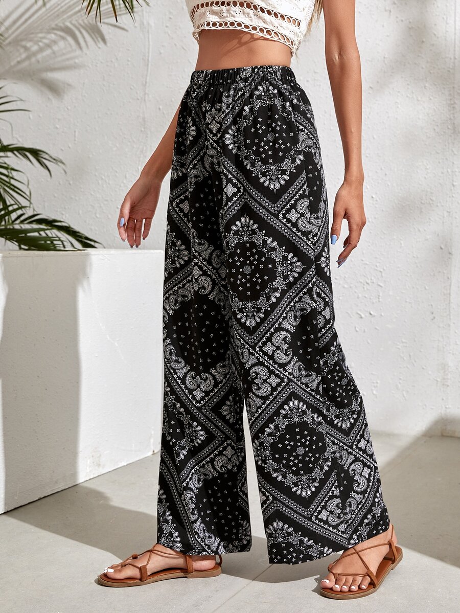 Pantaloni a gamba larga con stampa paisley con stampa fazzoletto