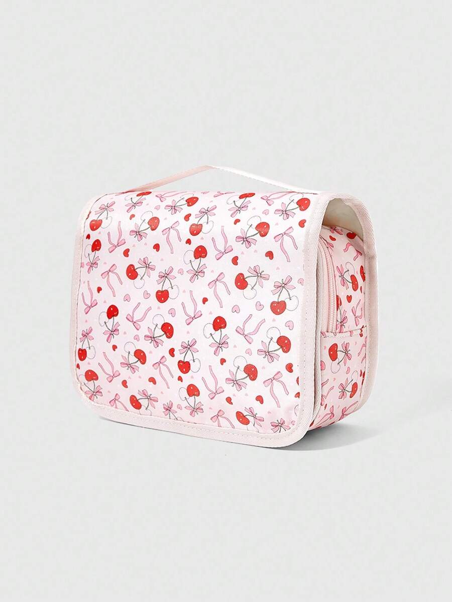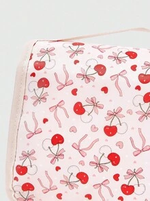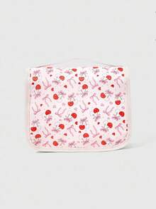 Borsa cosmetica portatile di moda kawaii con fiocco rosa chiaro e ciliegie